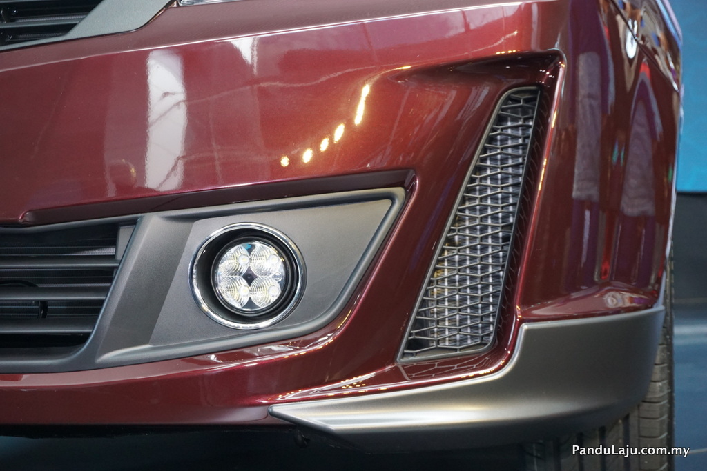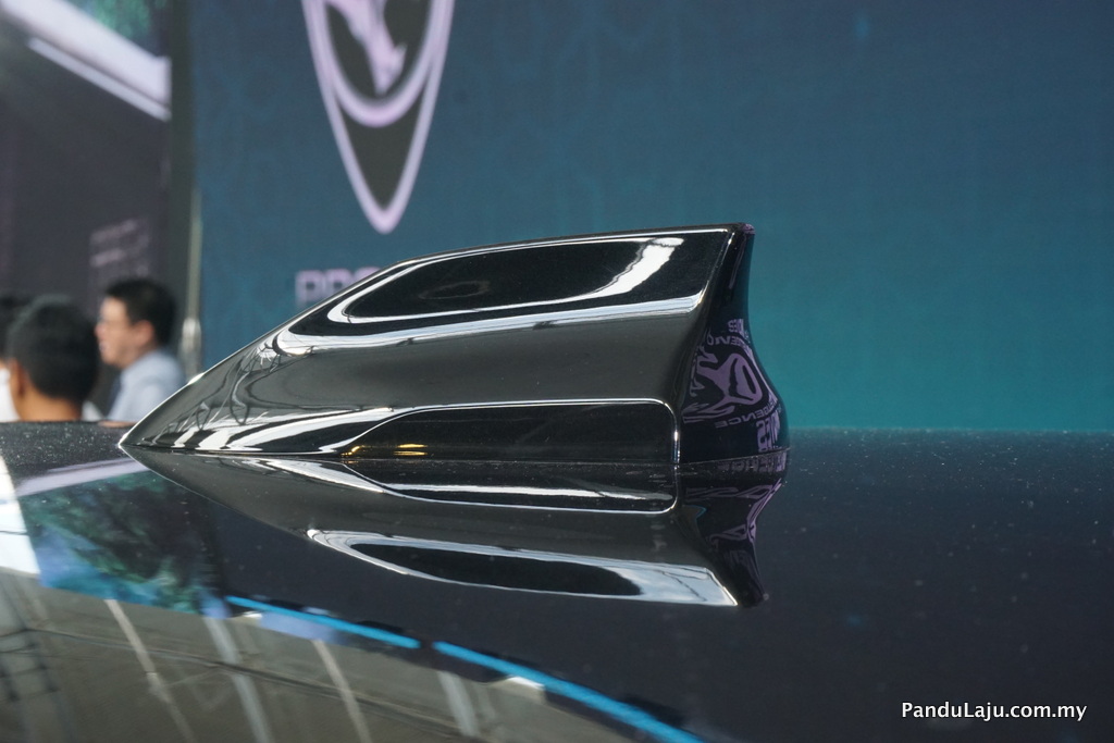 Rupa depan kini lebih sporty dan agresif tanpa kemasan krom apabila bahagian gril digelapkan sepenuhnya. Bampar depan juga sama, cuma diberikan kemasan hitam pada difuser tepi bawah, termasuk skirt. Antena konvensional digantikan dengan antena sirip yu.