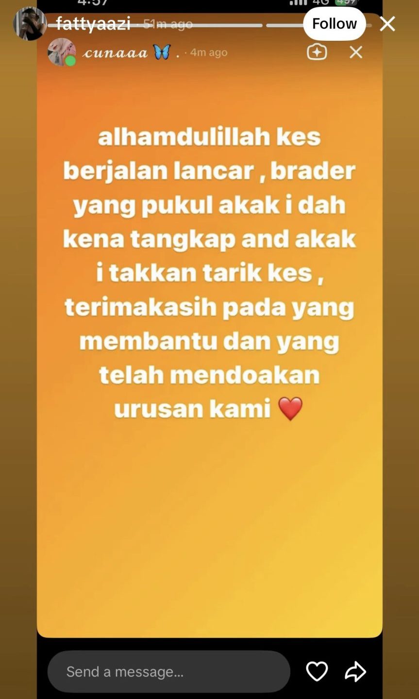 Keluarga mangsa turut merancang mengambil tindakan saman terhadap suspek sebagai langkah mendidik dan memberi pengajaran supaya insiden sama tidak berulang.