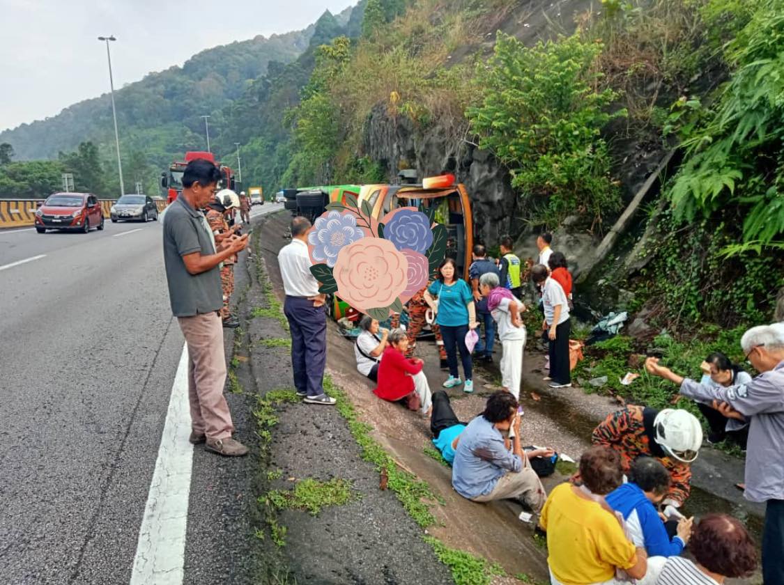 SERAMAI 40 penumpang, termasuk pemandu sebuah bas persiaran terbabas dan terbalik ke dalam longkang dipercayai berpunca daripada sebuah Honda Accord yang hilang kawalan di KM264.5 Lebuhraya Utara Selatan (PLUS), arah selatan, semalam.