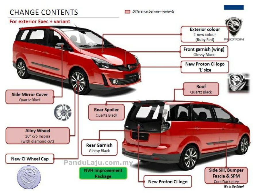 Antara pembaharuan dan penambahbaikan yang ditampilkan pada Proton Exora 2017 refinement ialah;