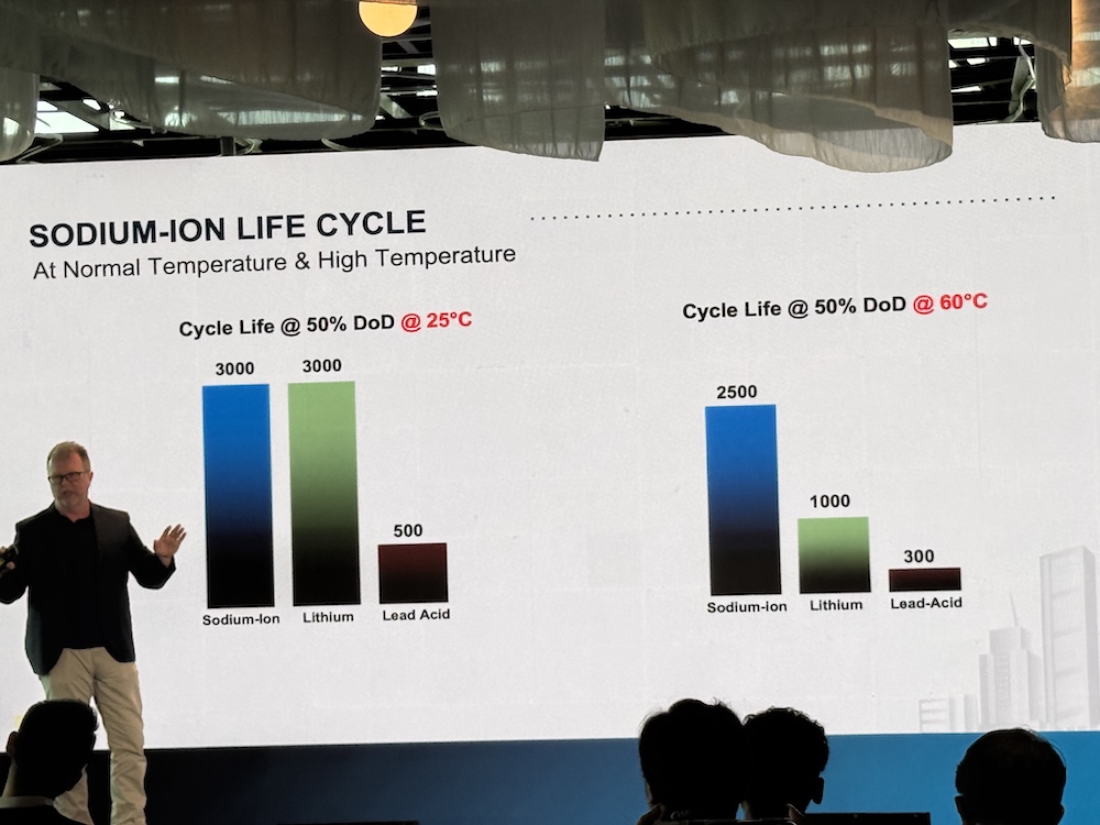 Prestasi bateri sodium-ion tidak mudah merosot akibat peningkatan suhu. Sebagai perbandingan, bateri plumbum lazimnya kehilangan sekitar 15 peratus jangka hayat bagi setiap peningkatan suhu 10°C.