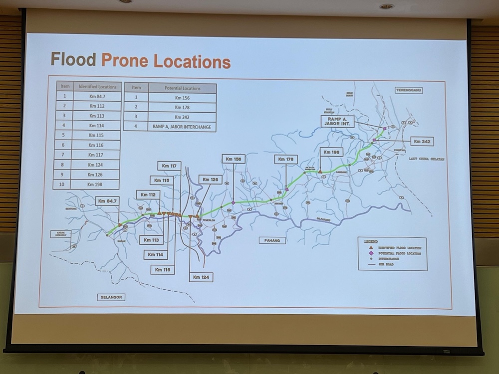 - Peninggian jalan di kawasan mudah banjir untuk mencegah takungan air dan mengekalkan akses jalan.