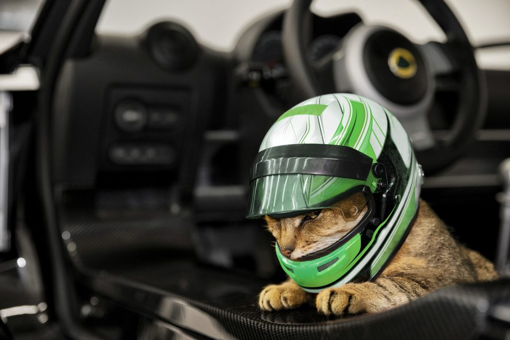 Anak syarikat DRB-Hicom, Lotus mengambil inisiatif mengeluarkan helmet penuh dipanggil Lotus Pet Lids yang dibikin khas buat kucing. Selain ringan, helmet itu juga ergonomik kerana memang direka khusus untuk kegunaan haiwan tersebut bersiar-siar menaiki kereta Lotus.