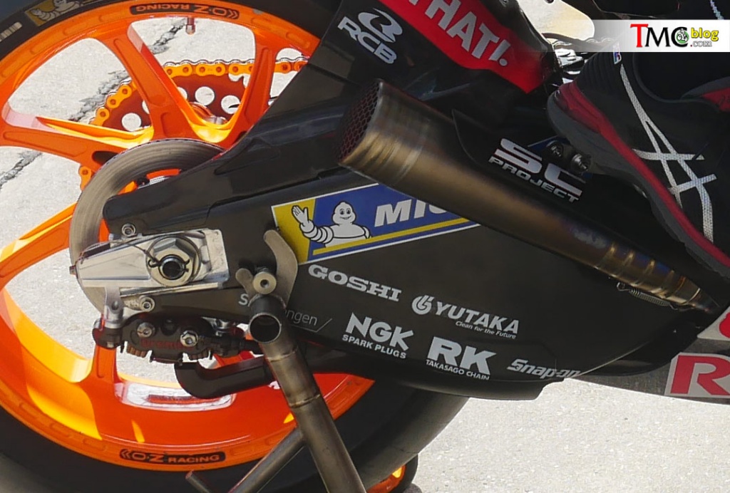 RC213V milik Alex menggunakan brek cakera belakang ventilasi dan dipasangkan dengan penyejuk kaliper, sama seperti Marquez. Dalam sidang akhbar, Alex mengakui tayar belakang memainkan peranan mengubah arah laju RC213V.