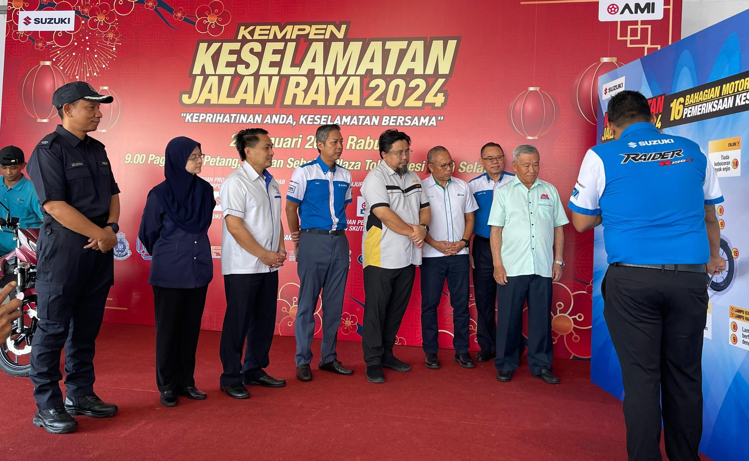 SUZUKI Malaysia Sdn Bhd melaksanakan Kempen Keselamatan Jalan Raya buat kali kedua sempena Tahun Baru Cina 2024. Program ini ialah inisiatif ketujuh dalam siri acara yang dianjurkan setiap tahun d ibawah AFY Mobility Industries (AMI).