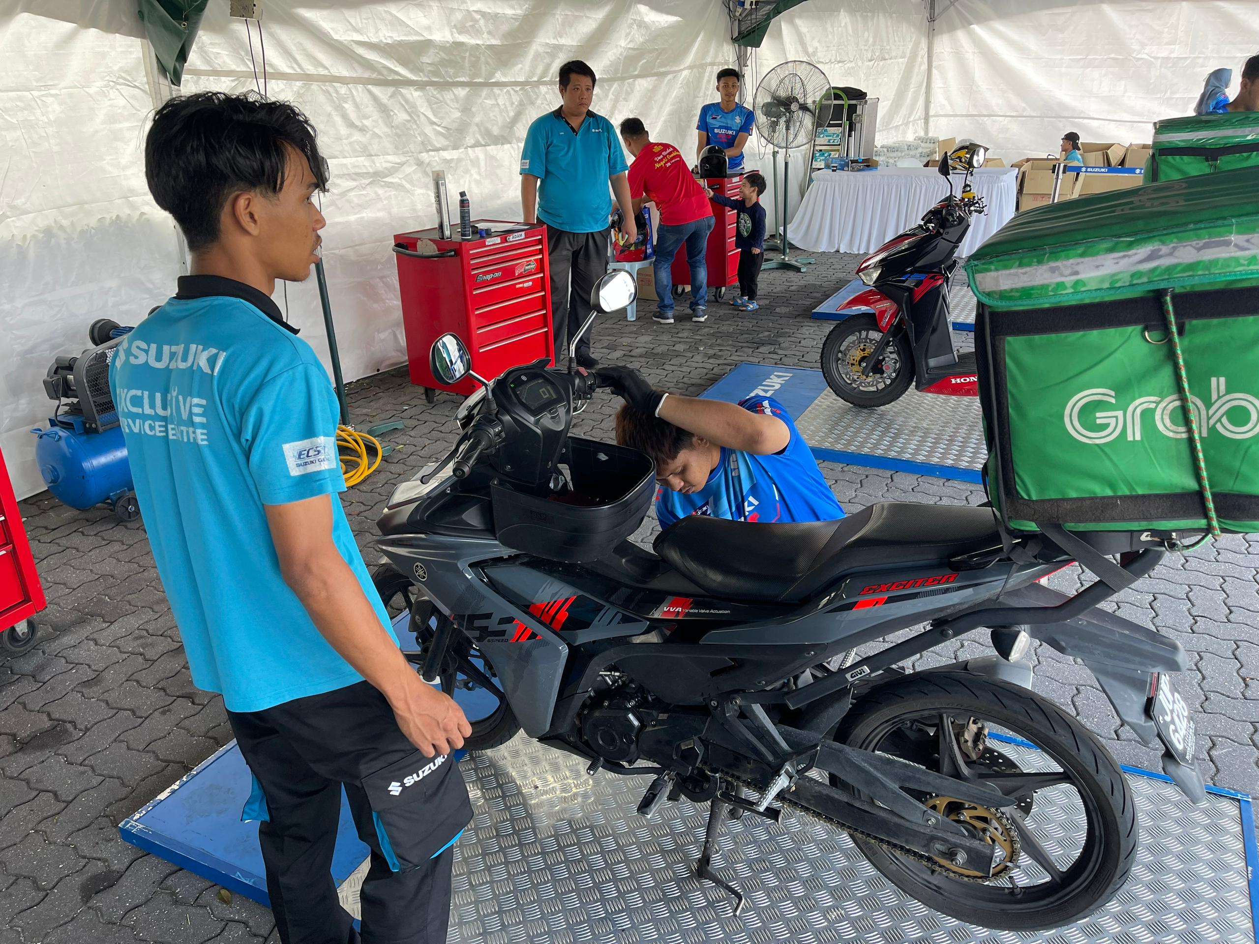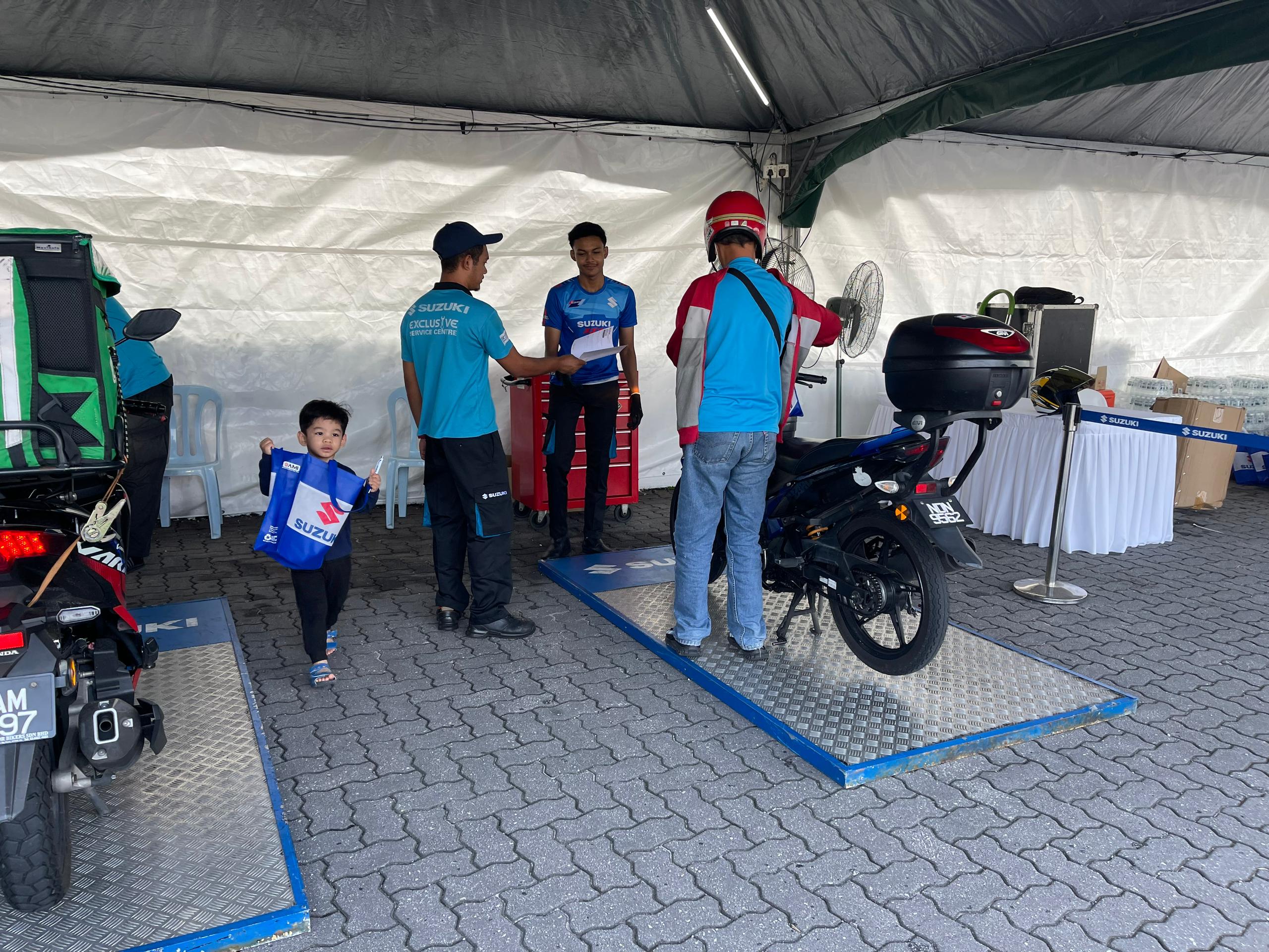 Majlis dirasmikan Pengerusi Persatuan Pengedar Motosikal & Skuter Malaysia, Datuk Wee Hong itu menyaksikan lebih 500 pengguna motosikal yang melalui kawasan Hentian Rehat Plaza Tol Sungai Besi Arah Selatan memanfaatkan tawaran percuma pemeriksaan keselamatan motosikal 16 poin dilakukan mekanik Suzuki terlatih.