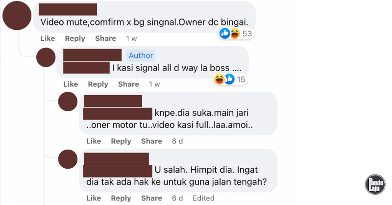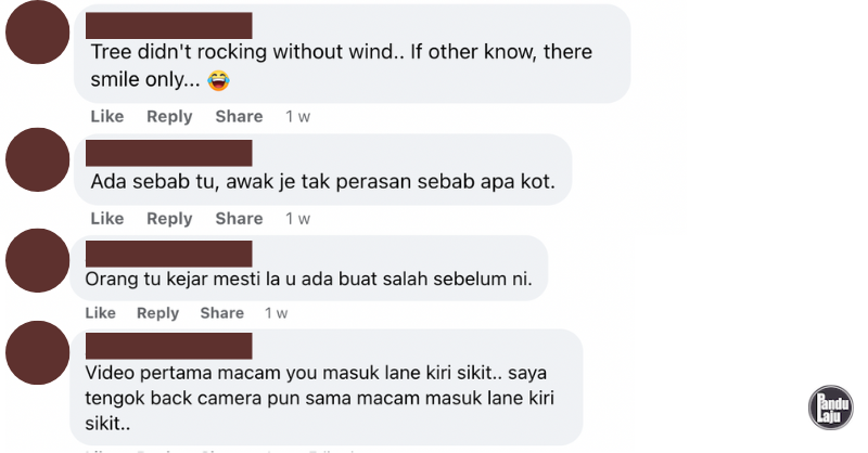 Bagaimanapun, wanita yang berkongsi video tersebut menegaskan bahawa dia memang menyalakan lampu signal belok semasa menukar lorong. Bagaimanapun, ini pula respon netizen: