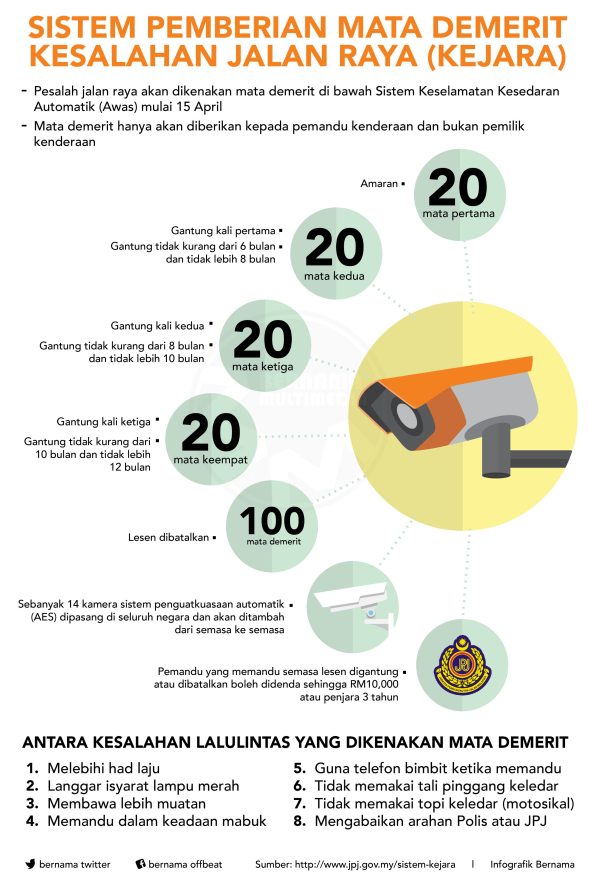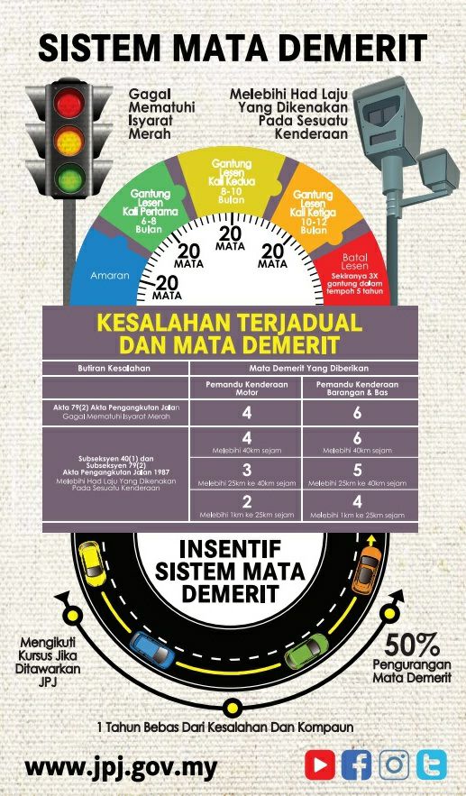 - Menggantung atau membatalkan lesen jika terlalu banyak mata demerit dikumpul