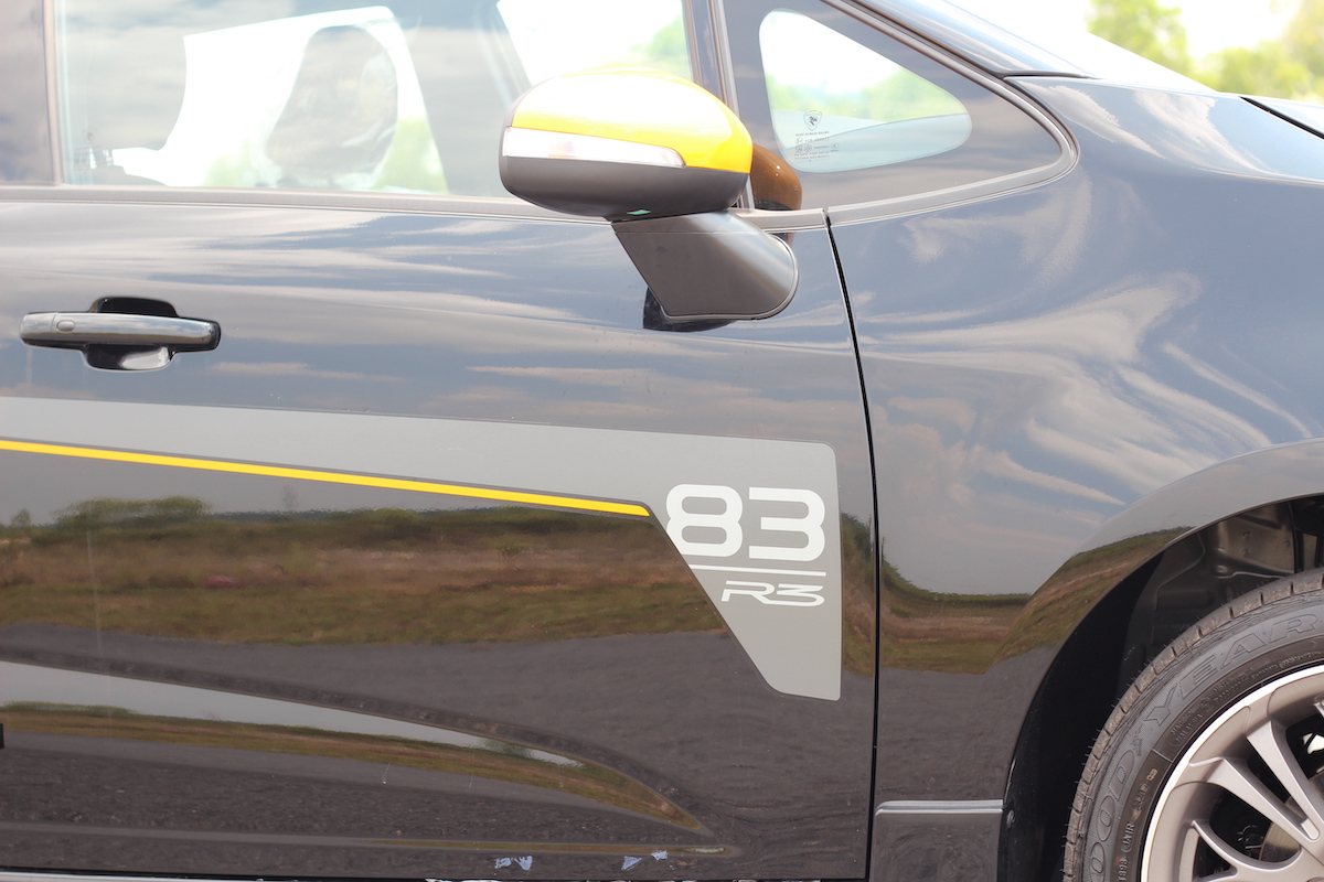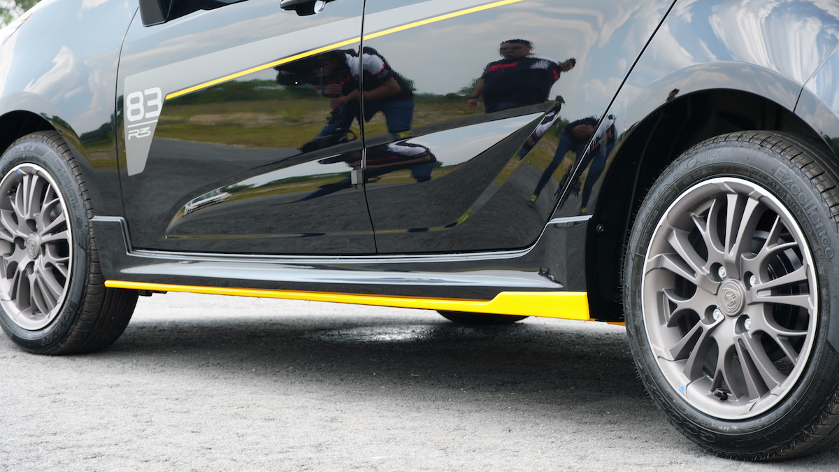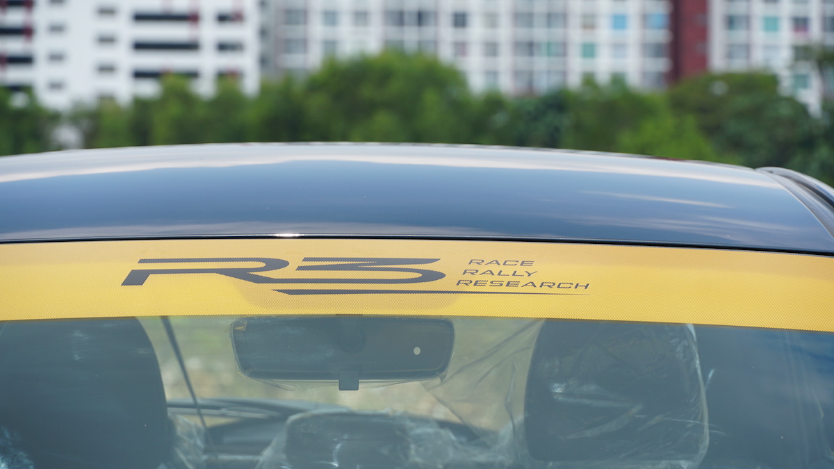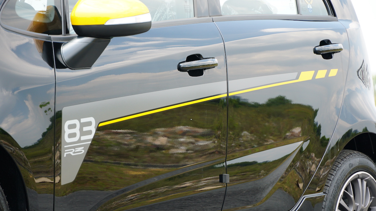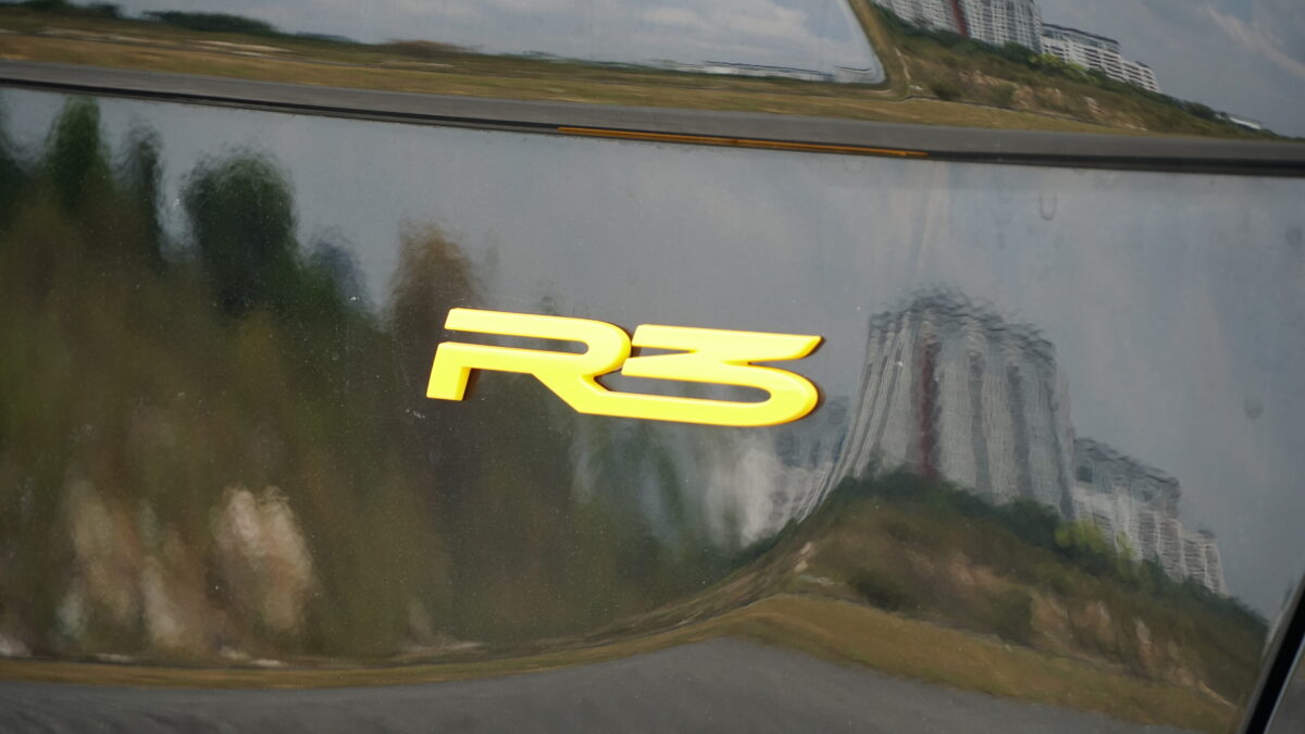 - Pelekat ‘R3’ pada sisi badan, spoiler dan cermin depan.
