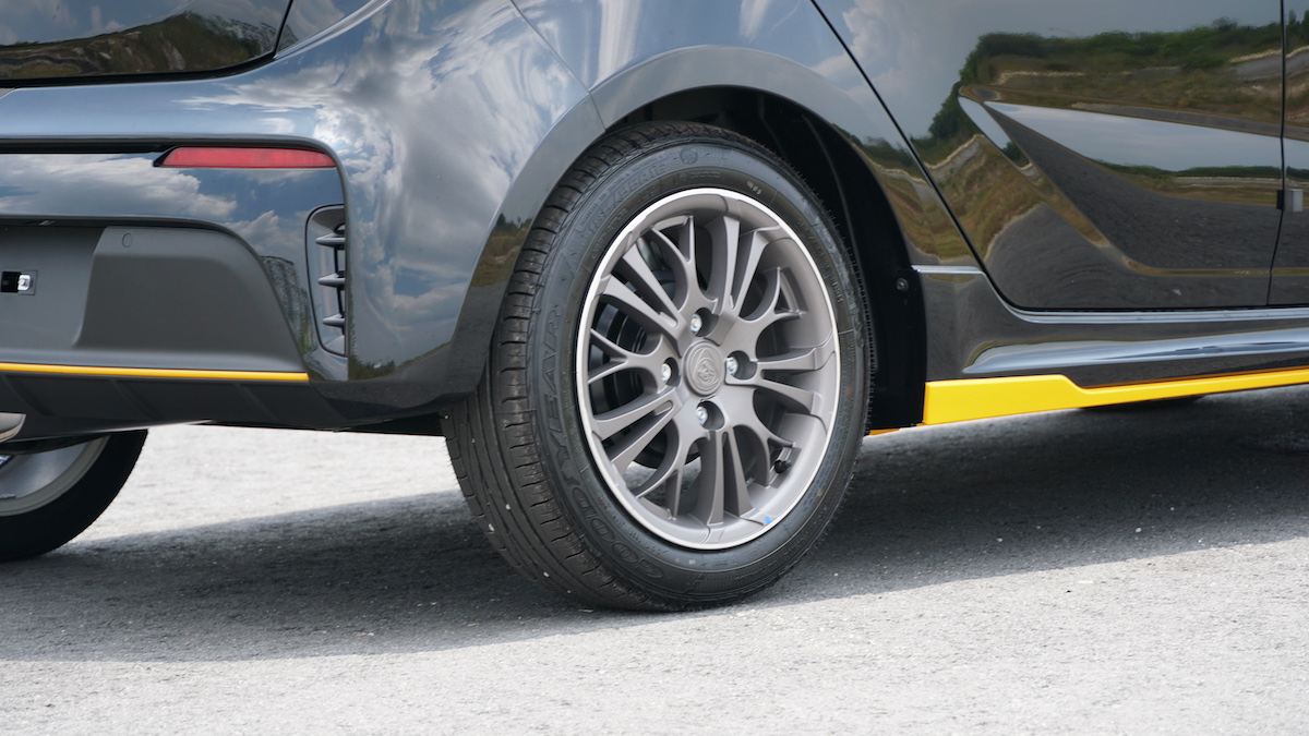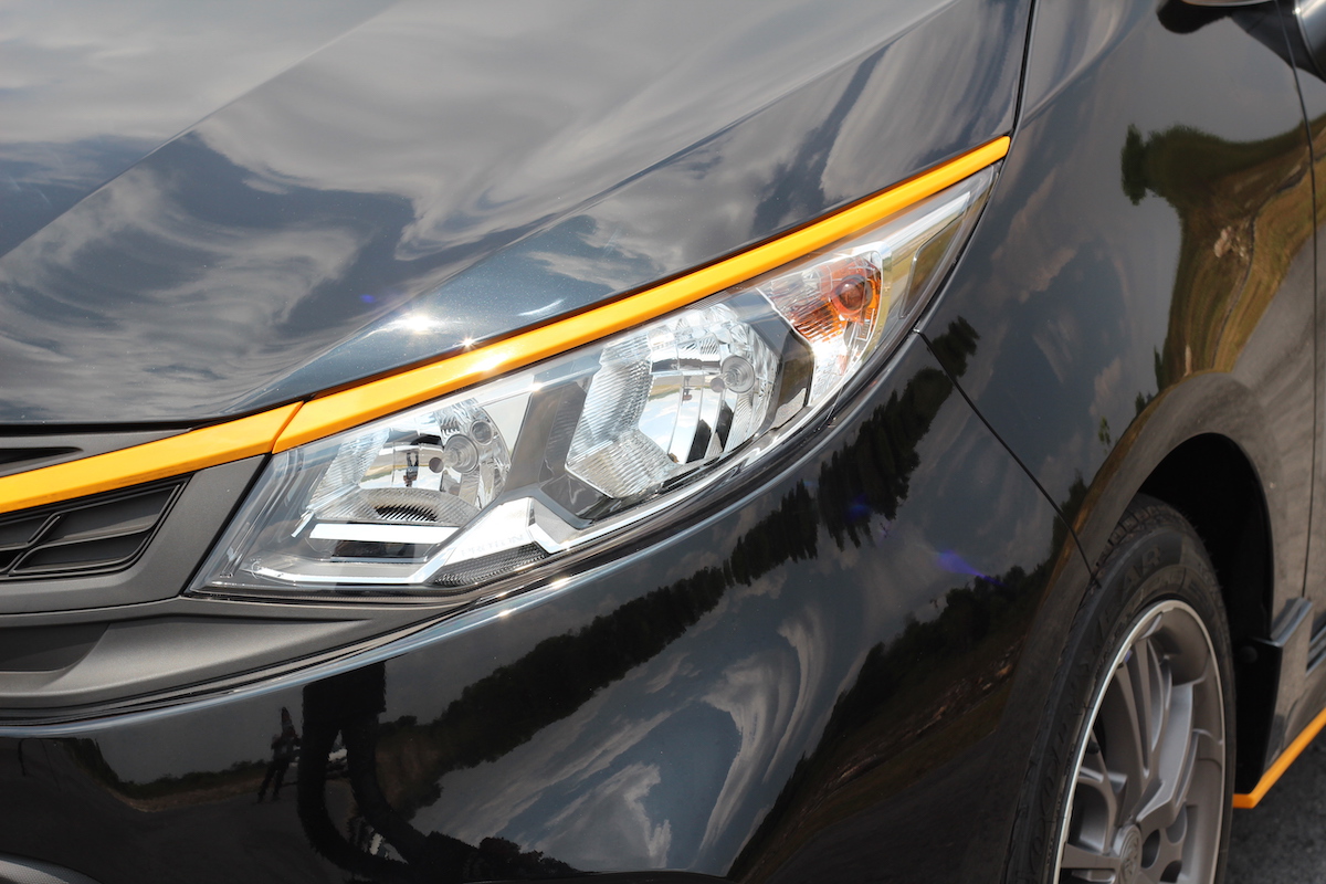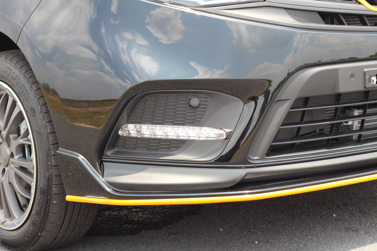 - Aksen kuning untuk luaran pada panel gril, perumah cermin sisi, bampar depan dan belakang, skirt sisi.