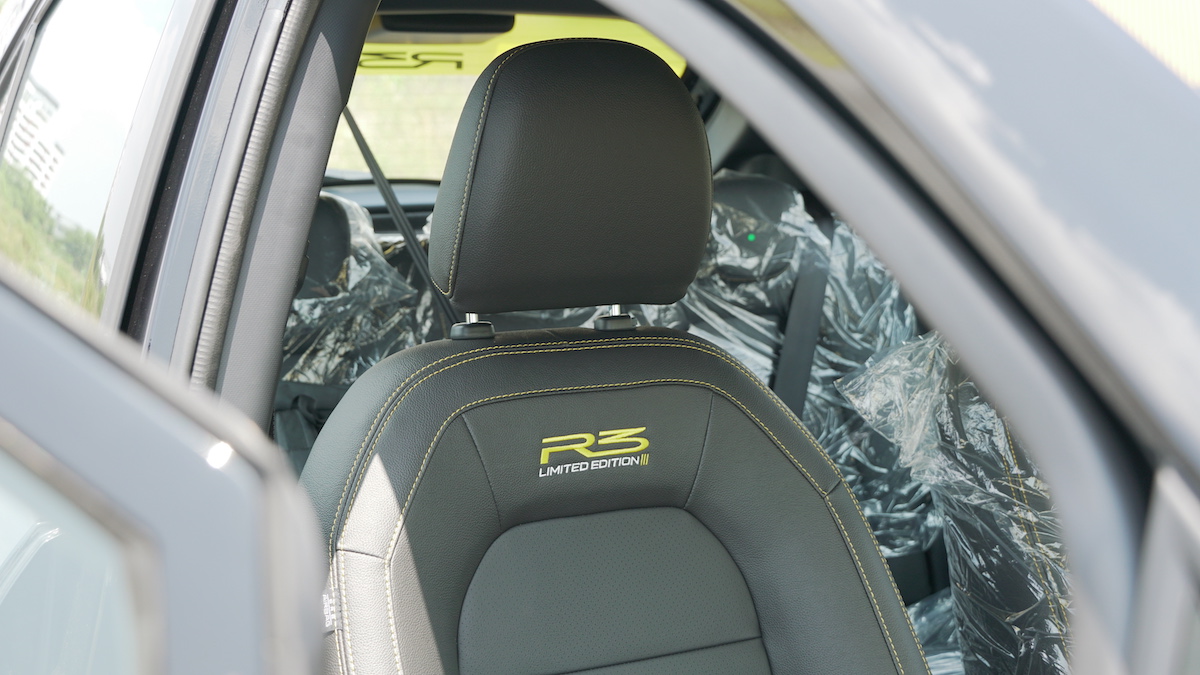 - Lencana ‘R3 Limited Edition’ pada papan pemuka dan penyandar kepala di kerusi.