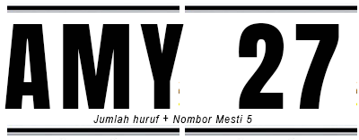 - Syaratnya, huruf dan nombor mestilah tidak lebih lima (contoh). Pengguna boleh memilih 3 huruf dan 2 nombor seperti di atas (AMY 27), atau 2 huruf dan 3 nombor (MU 868).