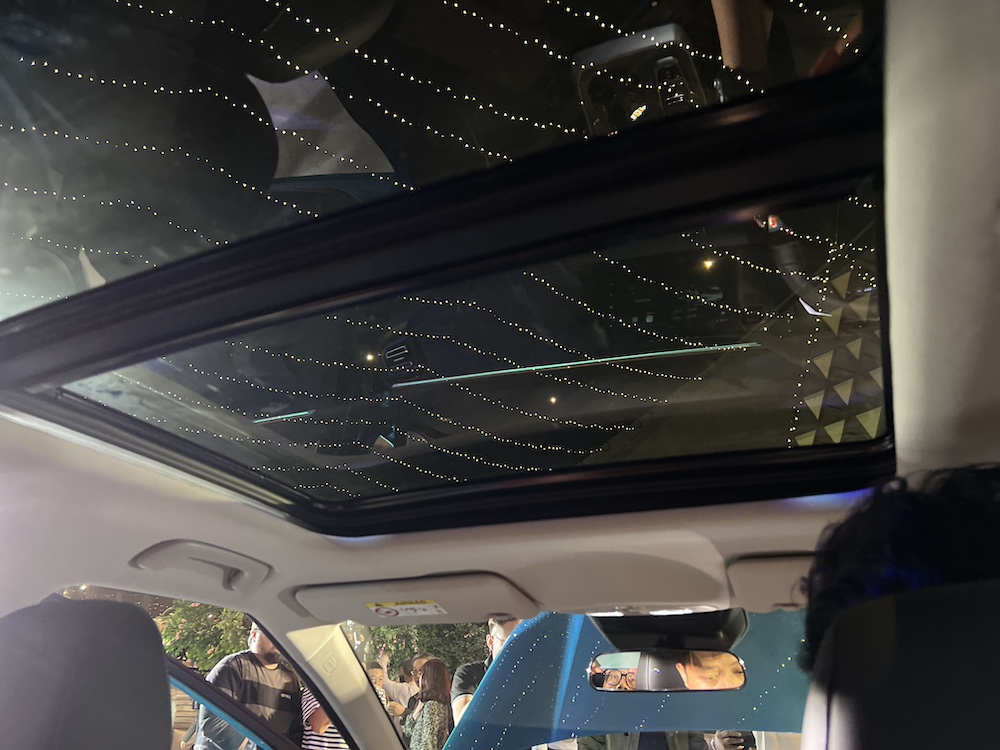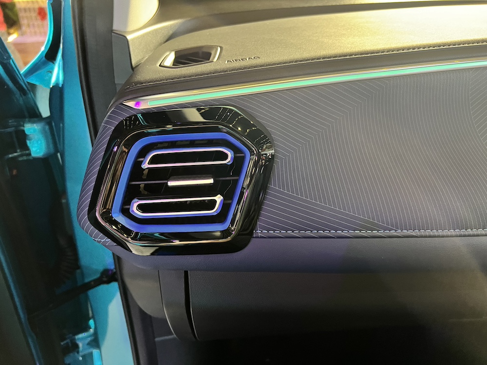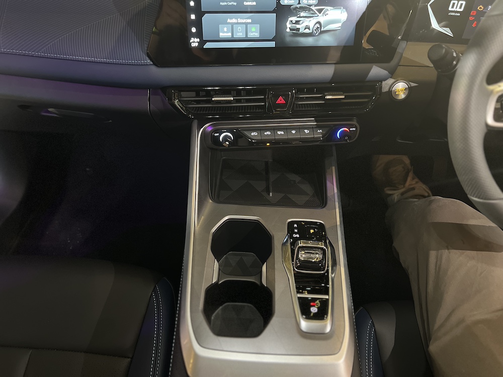 - Tombol gear kristal dengan sudut konsol butang kawalan penyaman udara, termasuk corong penyaman udara dan skrin unit infotainment sedikit miring ke arah pemandu untuk akses lebih mudah ketika memandu.