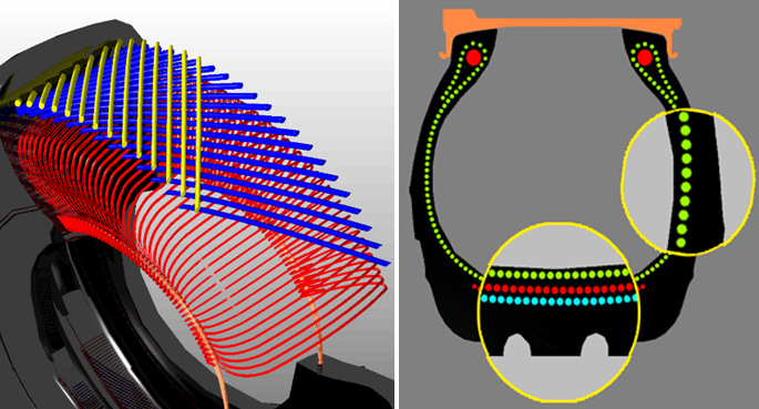 15. Dot Penunjuk Imbangan Tayar [0] – Menunjukkan bahagian tayar paling ringan yang diuji pengeluar. Kebiasaannya, dot itu diselarikan dengan kedudukan injap tayar, dengan anggapan bahagian injap ialah bahagian paling berat pada rim motosikal.