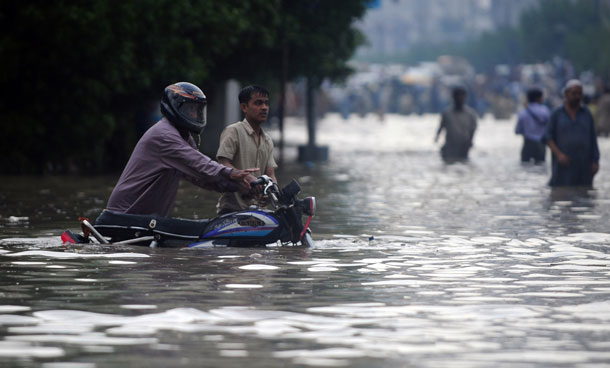 Jika terpaksa menempuh air yang dalam seperti banjir, tunggang perlahan, guna gear rendah (2 atau 3) dan pulas terotel berterusan. Jangan pula main-main pulas-tutup terotel. Biarkan terotel dipulas secara konsisten, dan gunakan brek belakang jika hendak perlahankan motosikal.