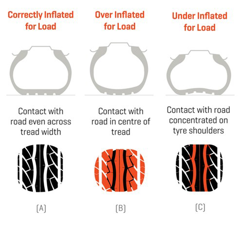 Sebaliknya, tekanan terlalu tinggi pula menyebabkan penggunaan jalur tengah tayar secara melampau. Selain itu, kita jadi tidak selesa sebab rasa tayar melantun-lantun ketika bergerak. Cengkaman pula terjejas kerana golekan tayar tidak dapat mengikut permukaan jalan.