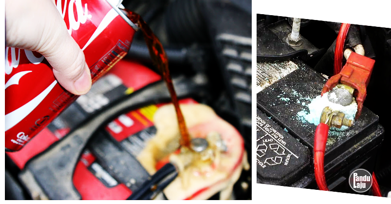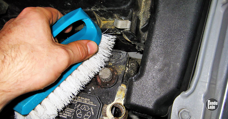 Cara membersihkan luaran bateri adalah gunakan air dan sabun, atau penyembur khas seperti WD40. Ada juga tip lebih jimat, iaitu sental guna Coca-Cola, tapi pastikan dibilas dengan betul. Jangan lupa tanggalkan semua kabel dari terminal bateri.