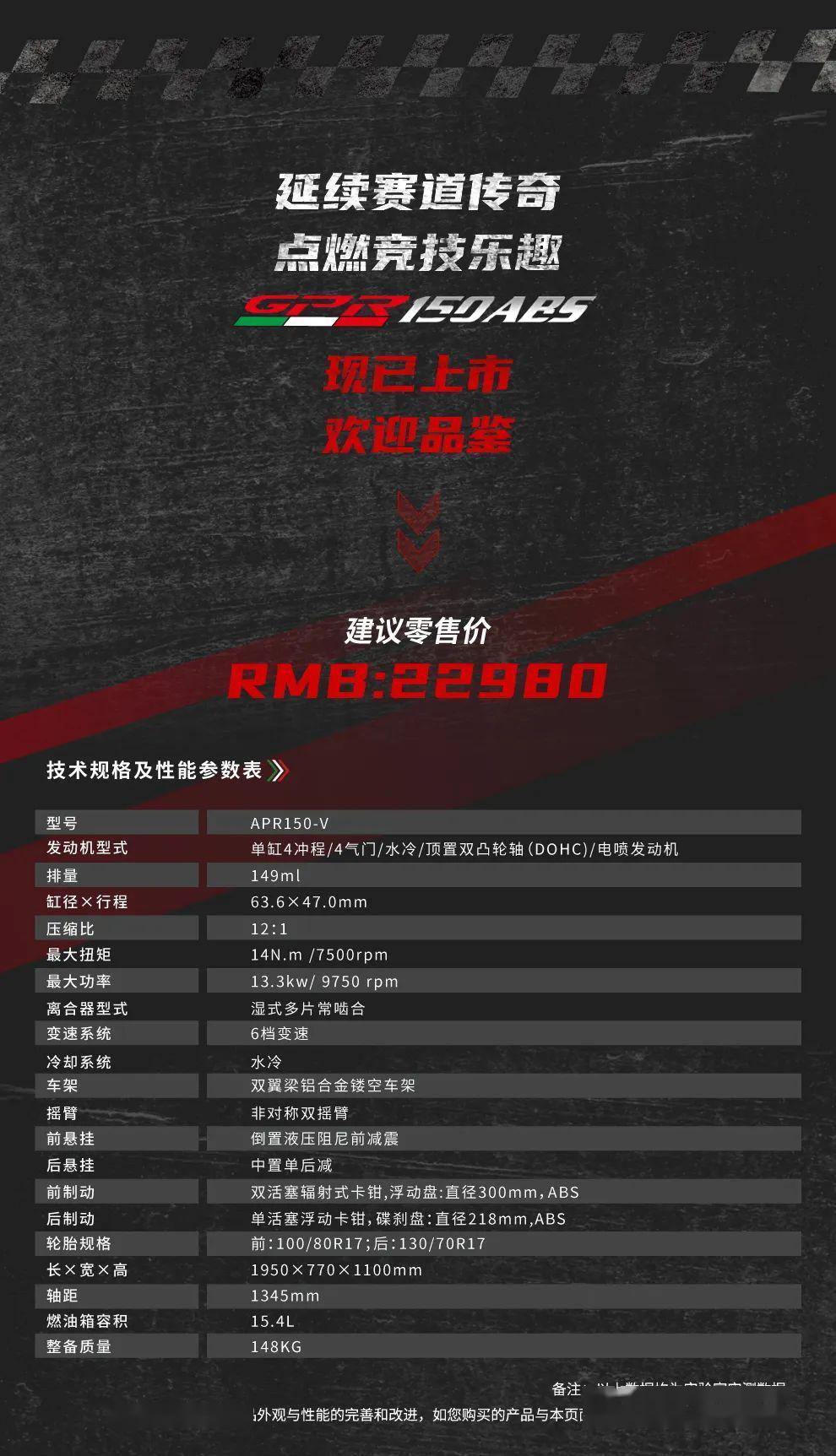 SPORTBIKE aras mula Aprilia GPR150 ABS versi terbaharu dilancarkan secara rasmi di China dengan menampilkan rekabentuk lebih segar dan sistem brek dinaik taraf.