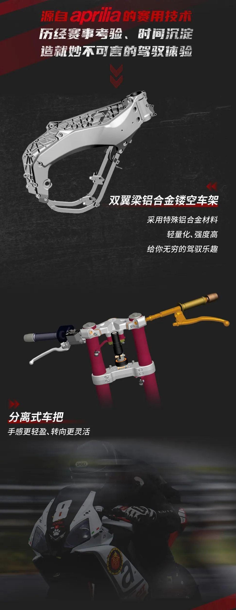Namun perubahan jelas dapat dikesan ialah penampilan seragam badan yang kali ini terpampang nama penuh sportbike itu pada panel fairing. Generasi sebelum ini hanya tertera huruf ‘a’ sahaja pada fairing, tetapi kini jelas tertulis perkataan ‘Aprilia’ besar pada sebahagian besar tangki minyak panel fairing sisi.