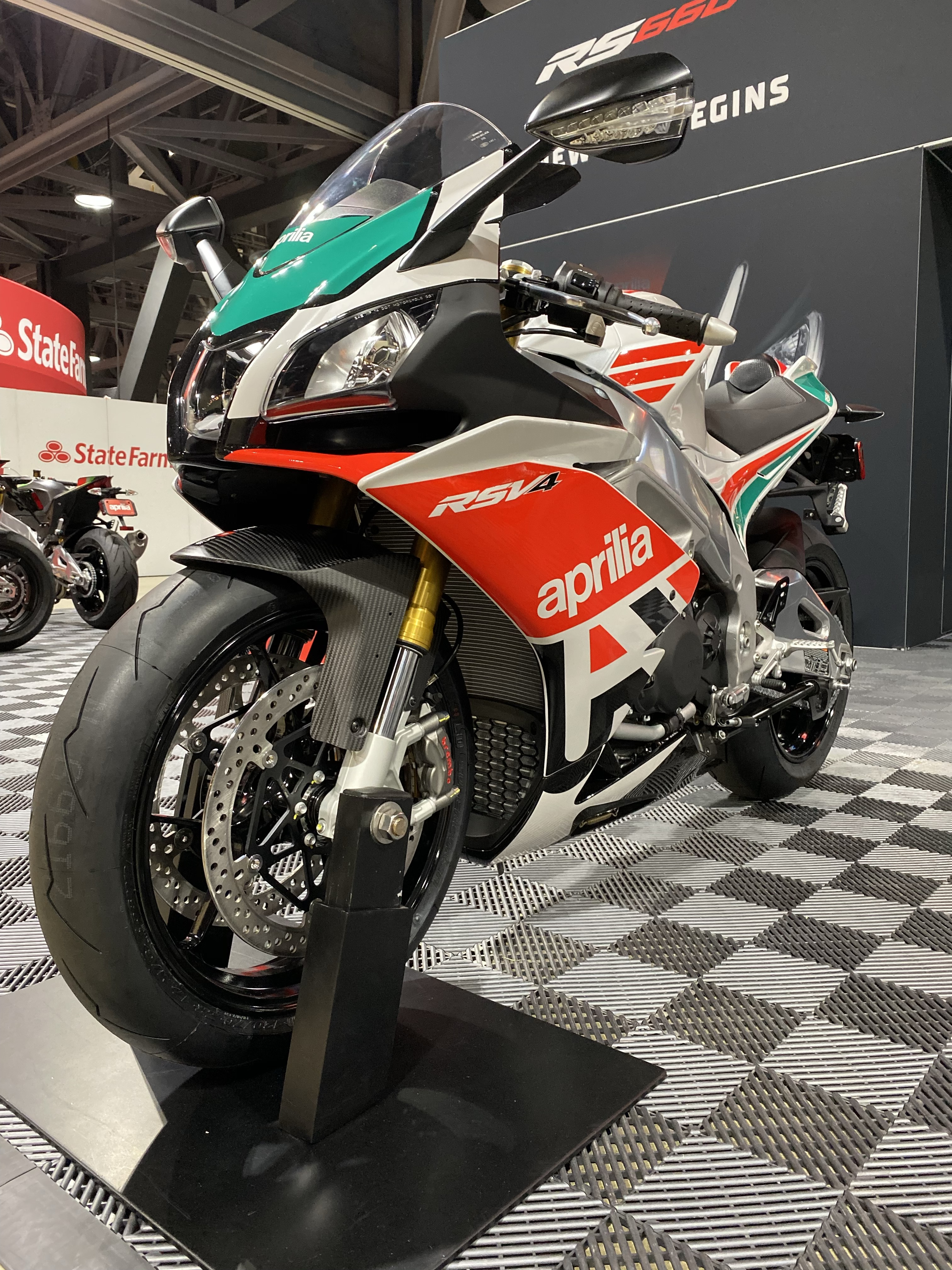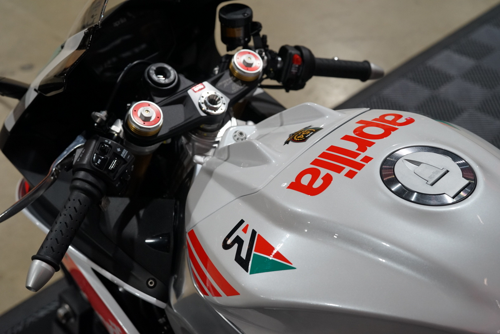 Apa yang istimewa mengenai model edisi terhad ini ialah seragam putih, merah dan hijau sebagai tribut kepada kejayaan Aprilia menerusi Loris Reggiani dalam kelas 250GP pada 1987 di litar Circuito Internazionale Santa Monica, yang juga dikenali sebagai Misano World Circuit Marco Simoncelli.