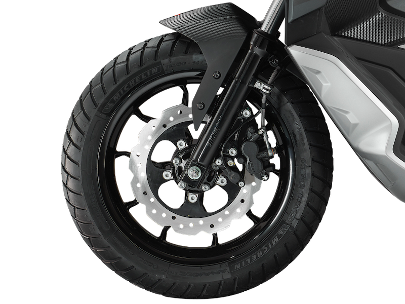 - Rim 14 inci depan dibalut tayar 110/80, manakala rim 13 inci di belakang dengan tayar 130/70.