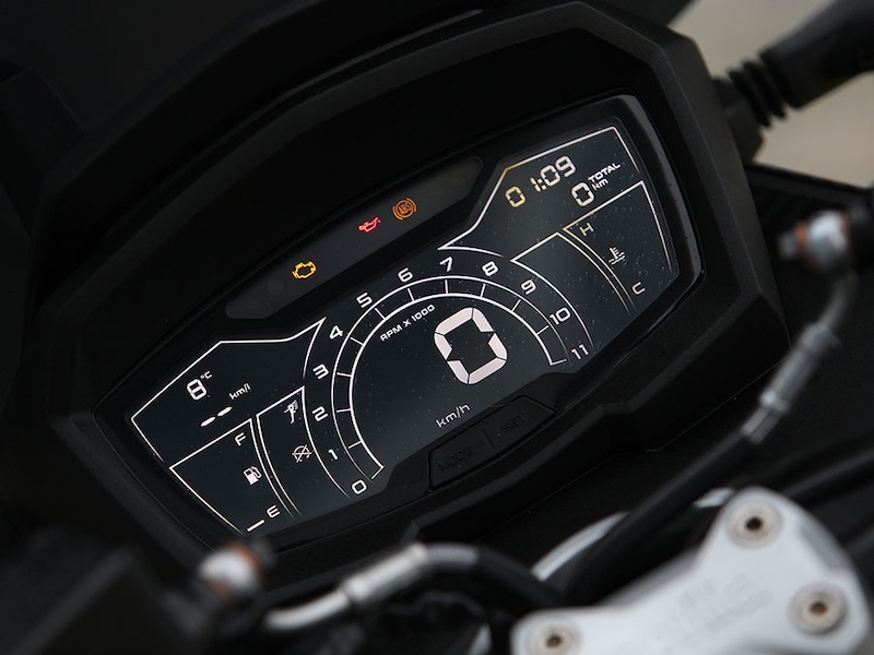 - Rekaan fairing mengambil ilham motosikal enduro dengan visor angin tinggi untuk tunggangan lebih dinamik.