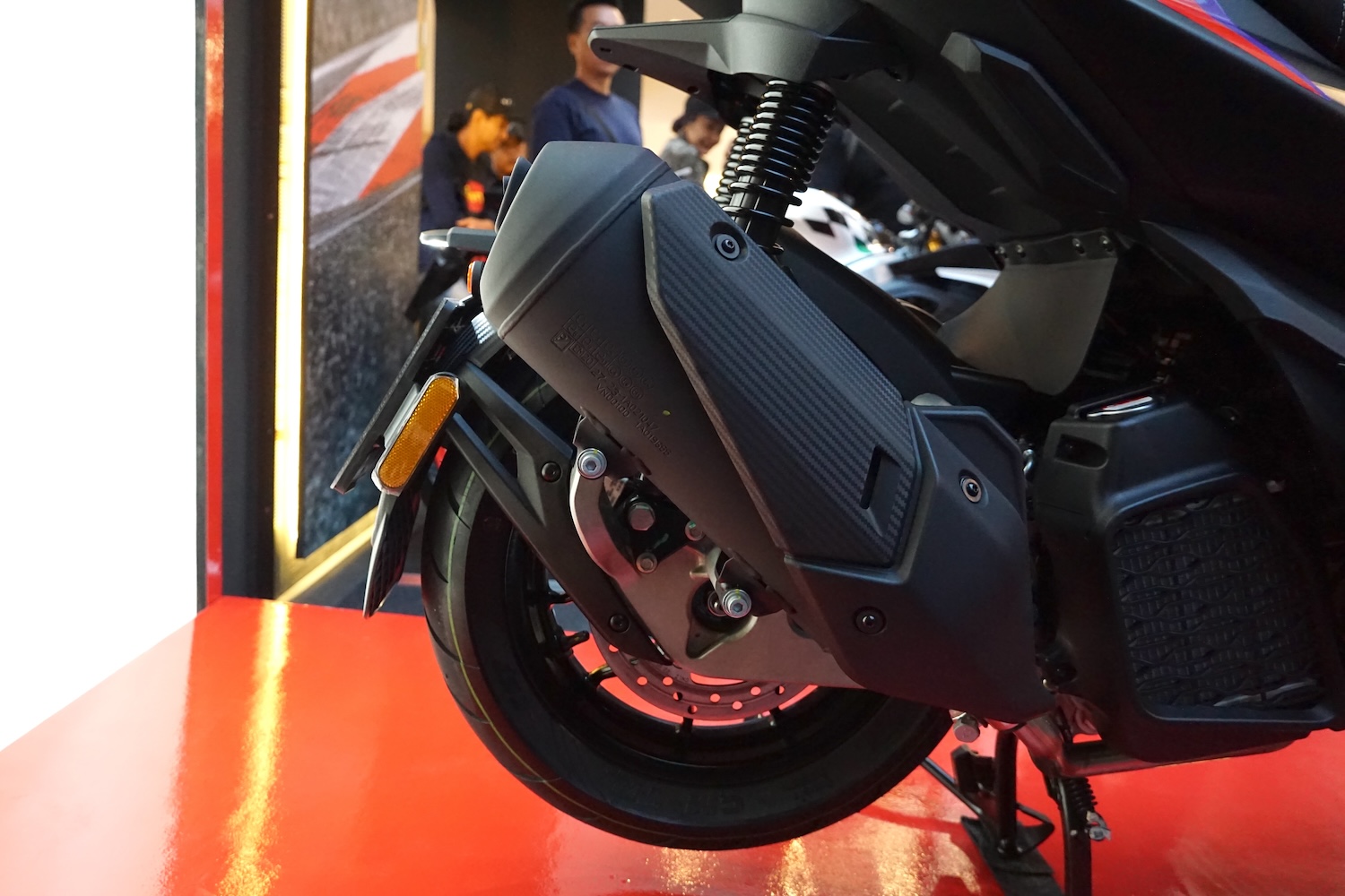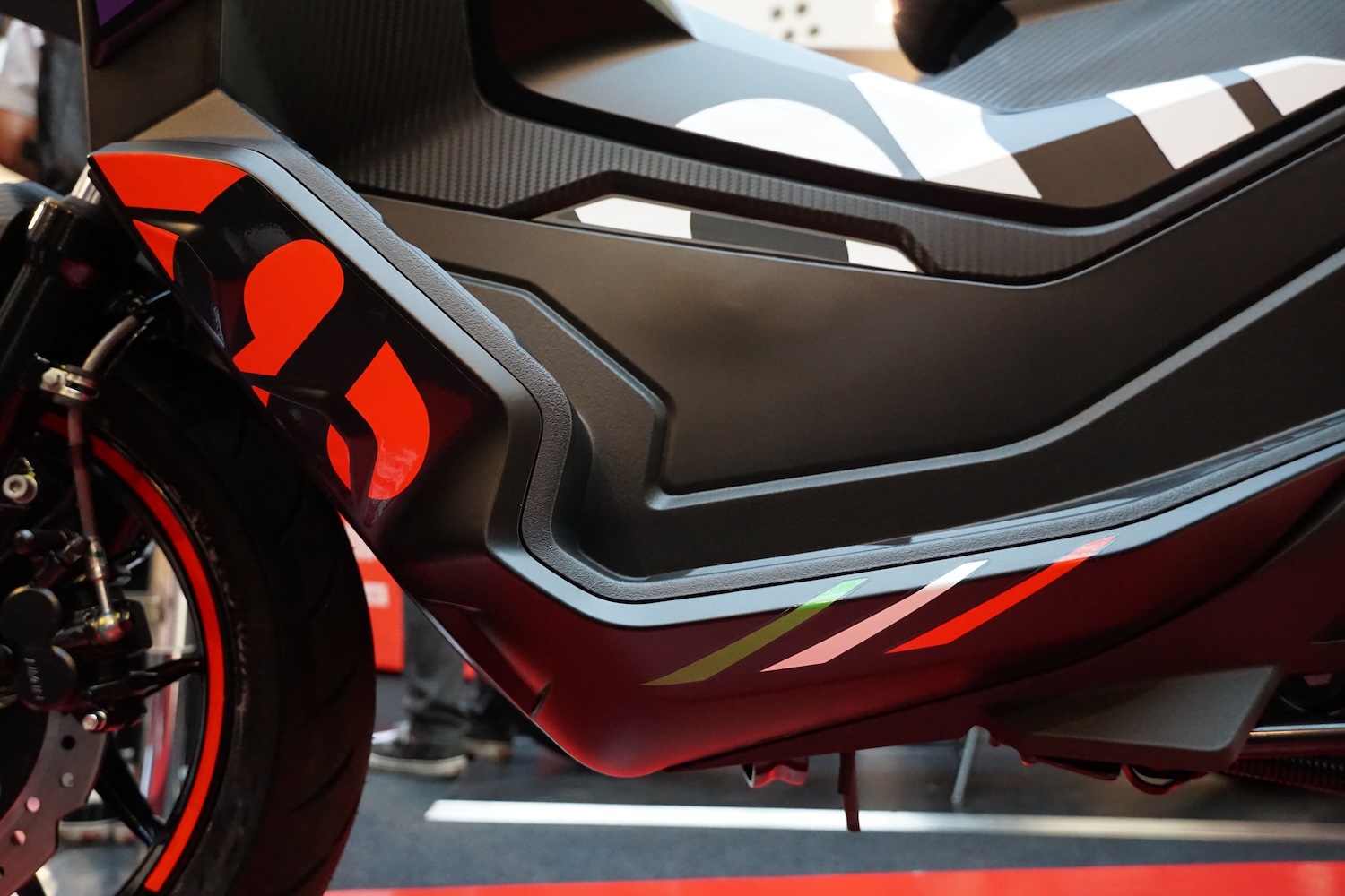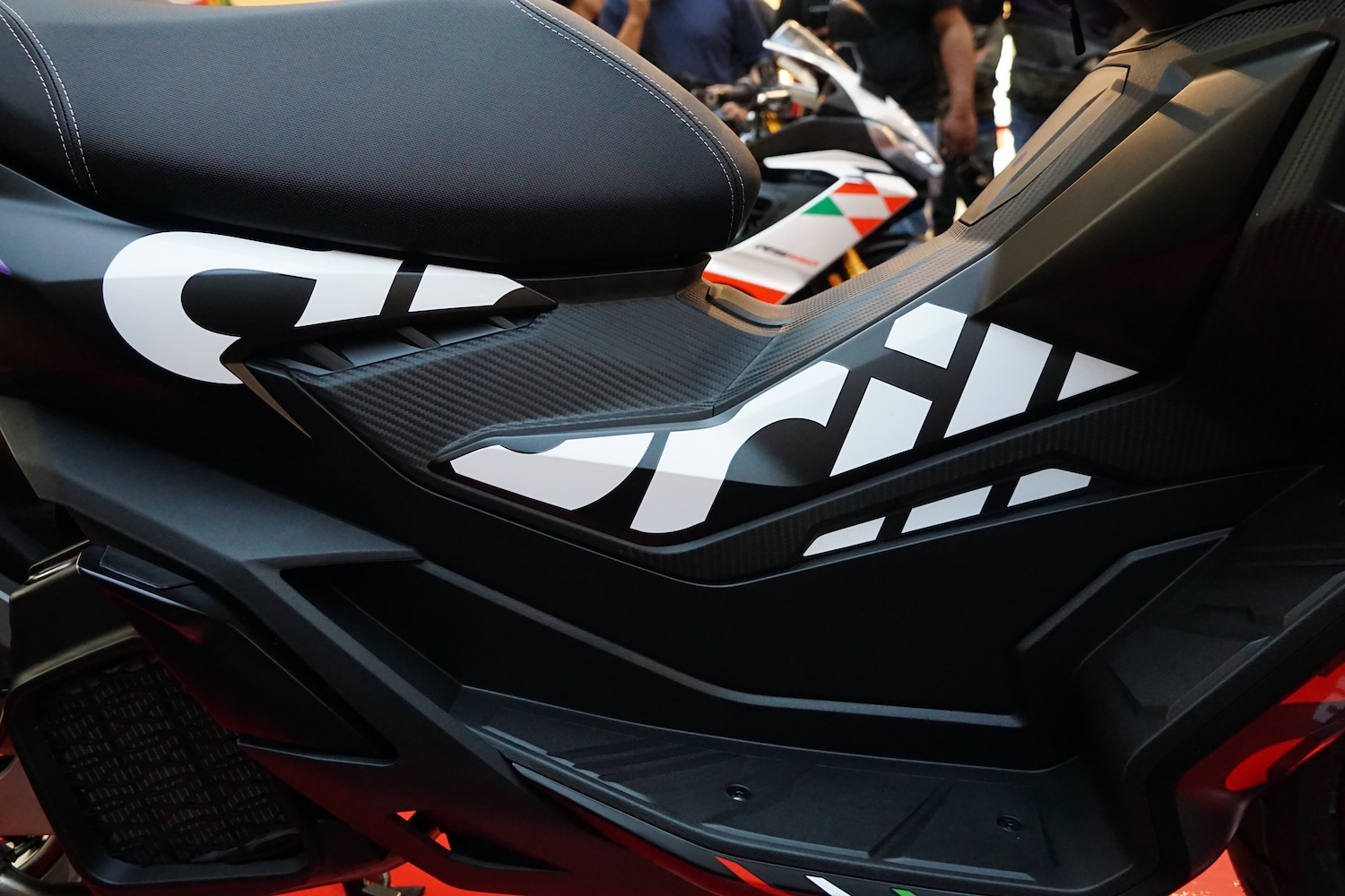 - Ditampal logo Aprilia secara melintang di sisi skuter hingga ke bahagian tengah.