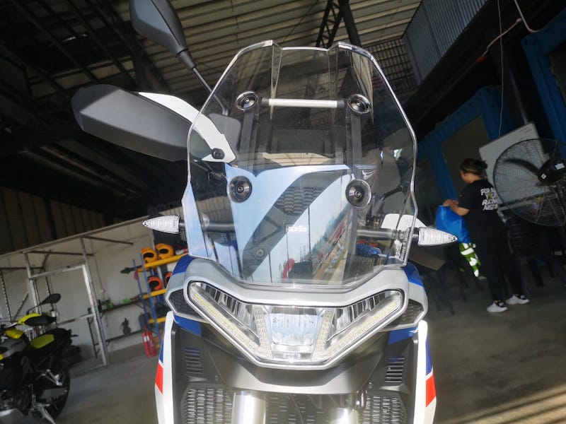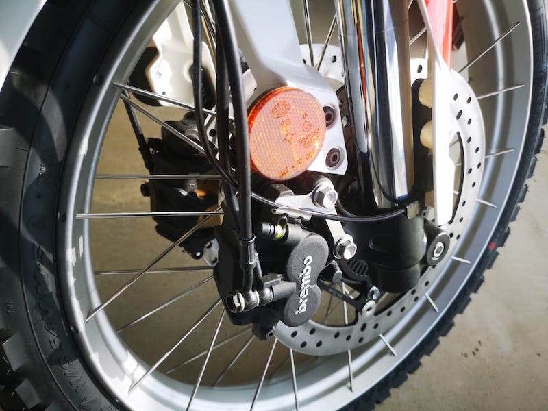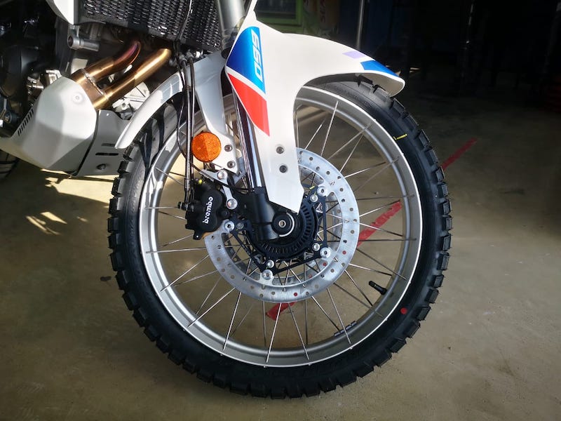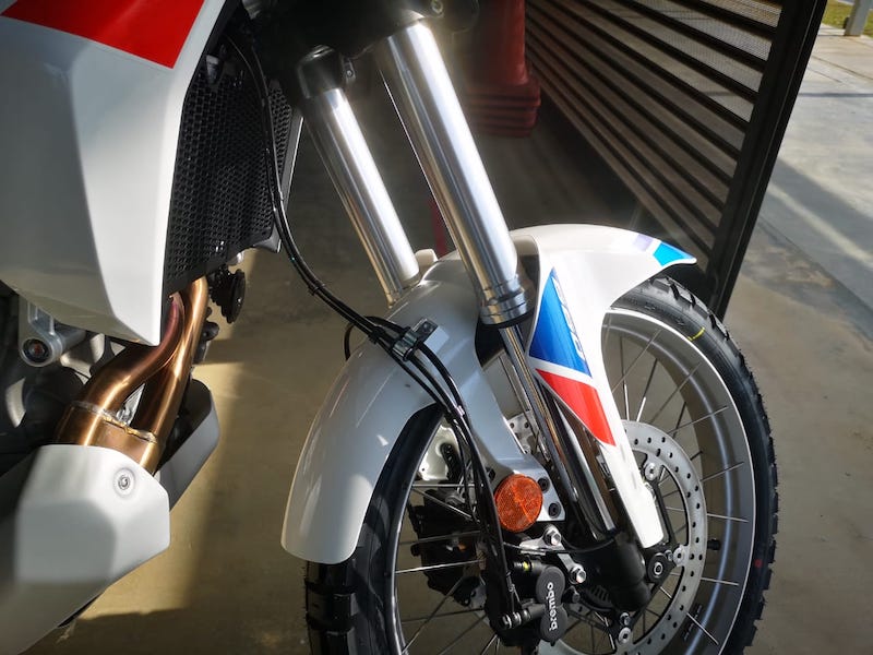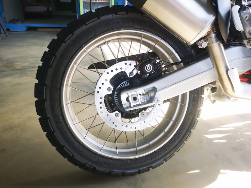 - Rim jejari 21 inci dengan saiz tayar 90/90 di depan, dan 18 inci dengan tayar 150/70 (belakang), manakala jenama tayar digunakana Pirelli Scorpion.