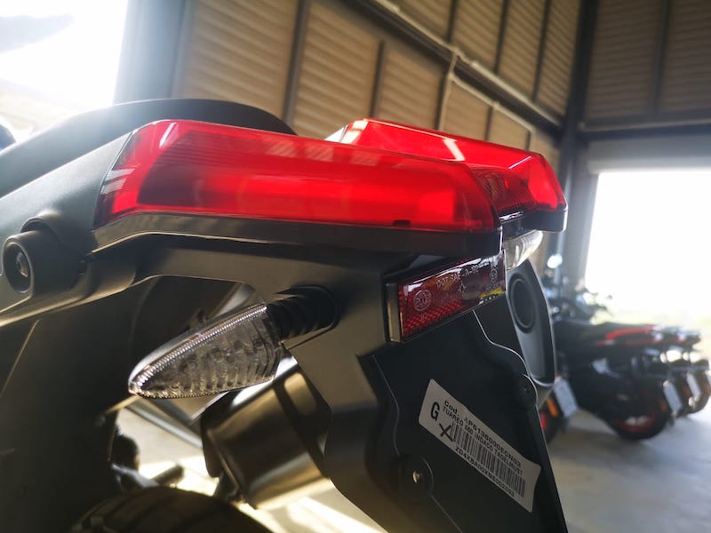 - Tinggi pelana 860mm, berat kasar 204kg, dan kapasiti tangki minyak 18 liter.
