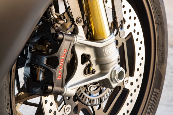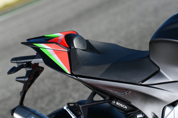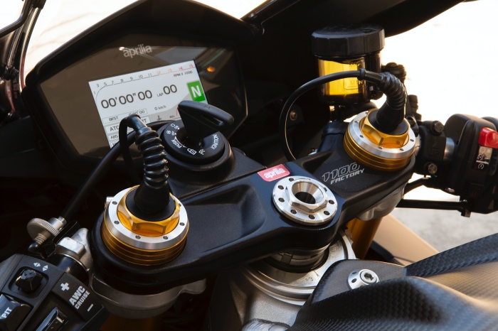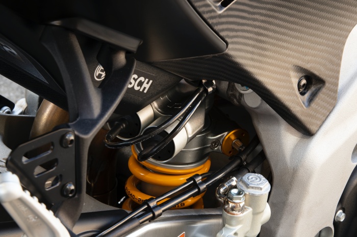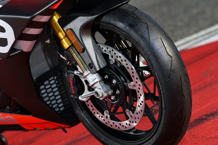 - Kebanyakan komponen diambil daripada superbike Aprilia RSV4 RF. Kaliberasi boleh dilakukan dengan mudah menerusi butang kawalan pada bar hendal