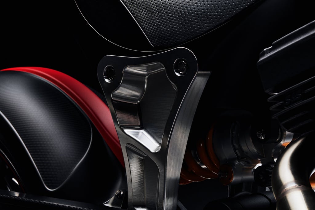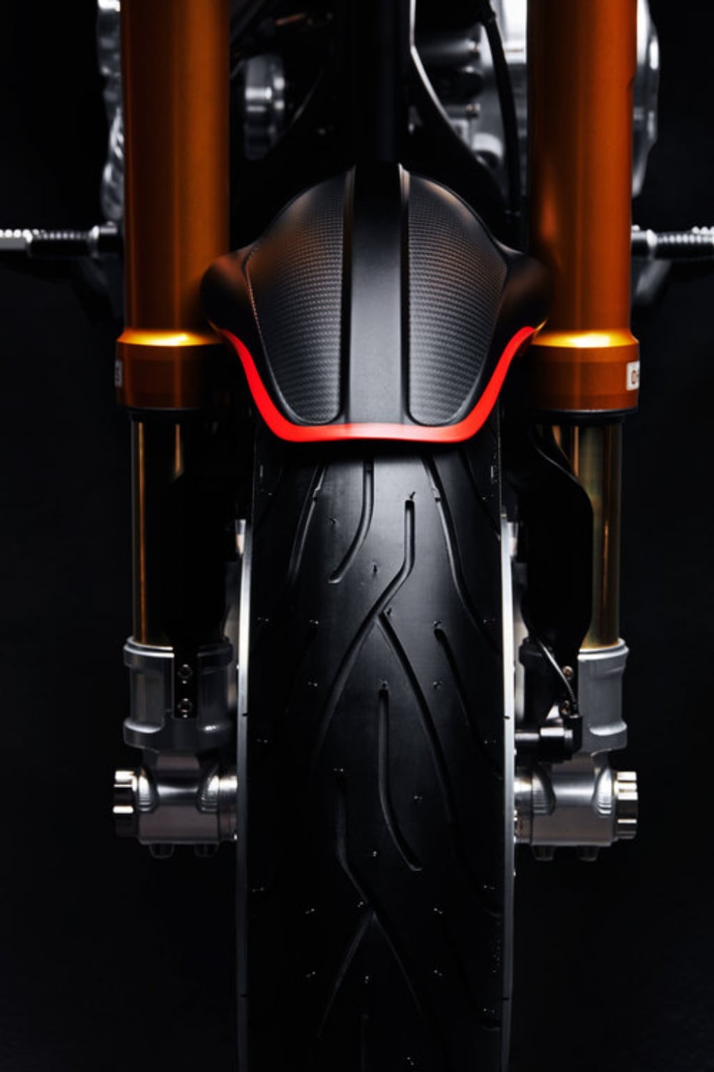 Bahagian casis dipadukan frem keluli dengan swingarm aluminium. Komponen mewah lain termasuk sistem suspensi Öhlins, brek ISR dan rim karbon BST. Pembeli boleh menempah secara online di ArchMotorcycles.co.uk.