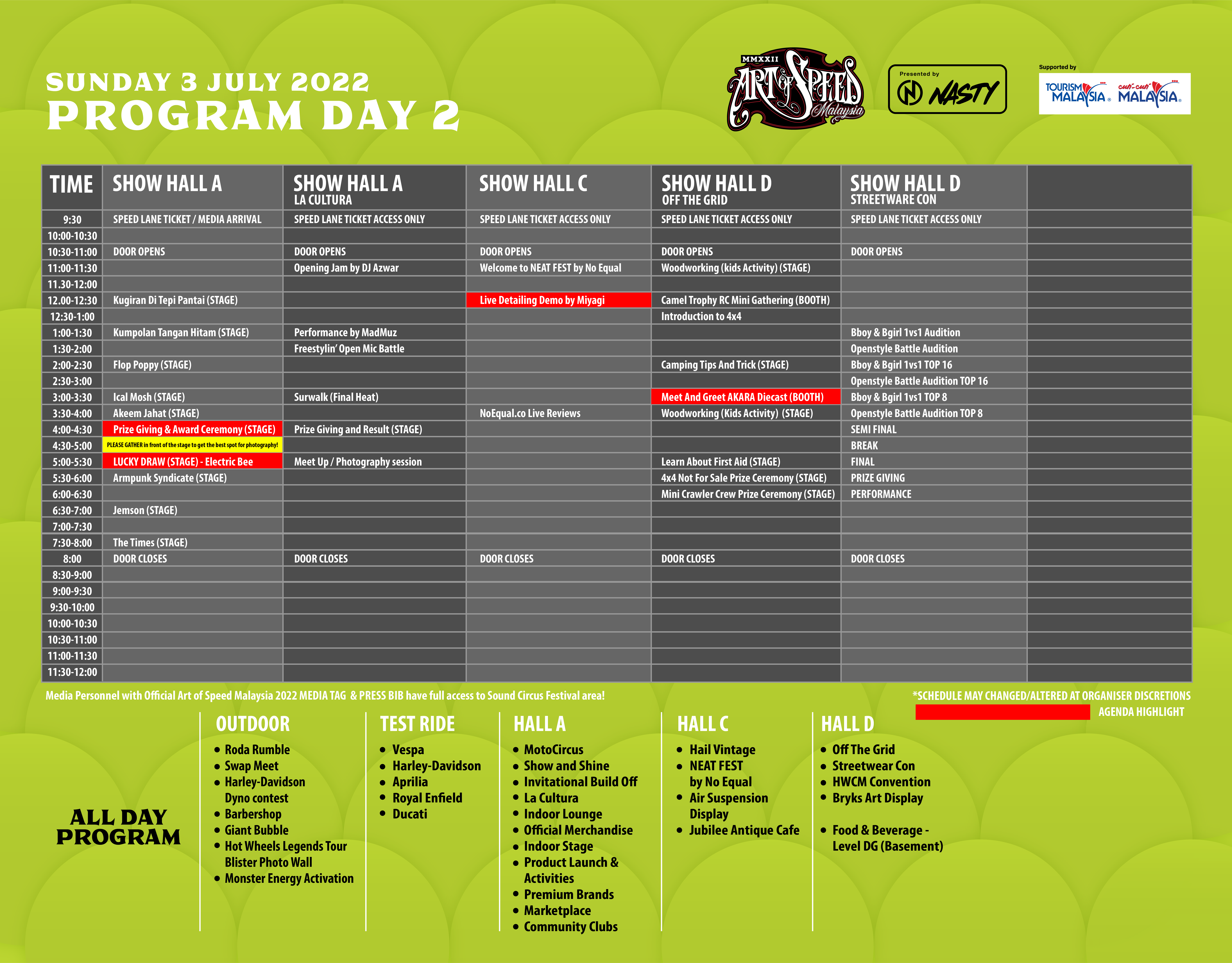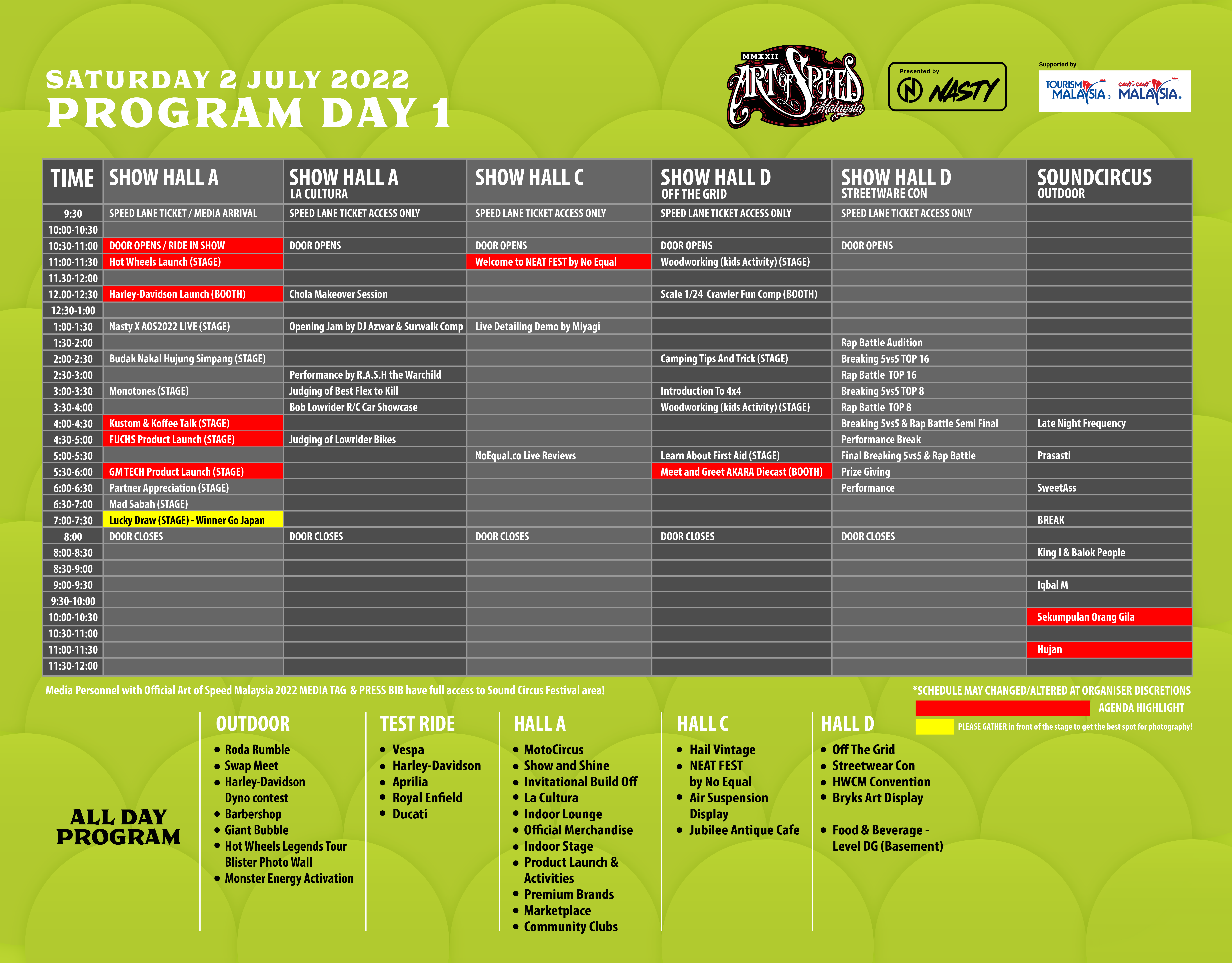 - Kustom & Koffee Talk bersama NoEqual.co yang akan membincangkan topik-topik terkini di dalam industri permotoran.