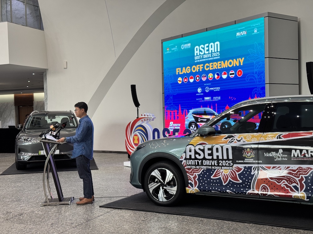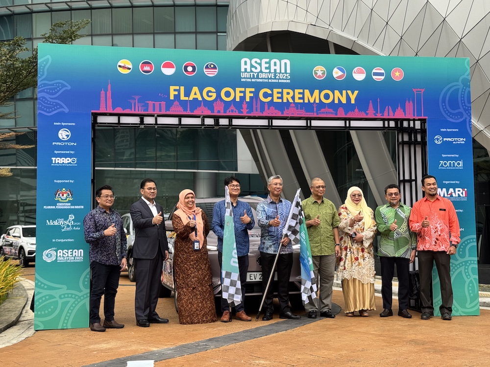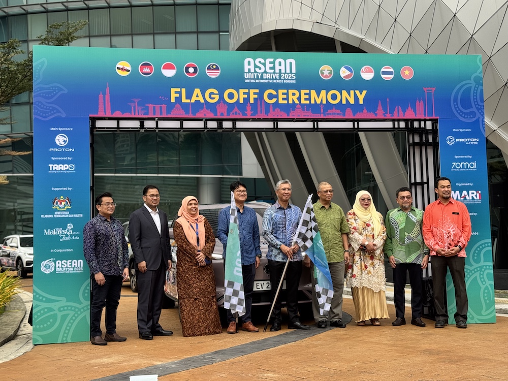 INSTITUT Automotif, Robotik dan IoT Malaysia (MARii) dengan sokongan Kementerian Pelaburan, Perdagangan dan Industri (MITI) serta Tourism Malaysia hari ini merasmikan acara Flag-Off ASEAN Unity Drive 2025 (AUD 2025) yang menandakan permulaan pengembaraan konvoi Proton e-MAS 7 sejauh 9,000km merentasi sembilan negara Asean bagi mempromosi kelestarian dalam mobiliti.