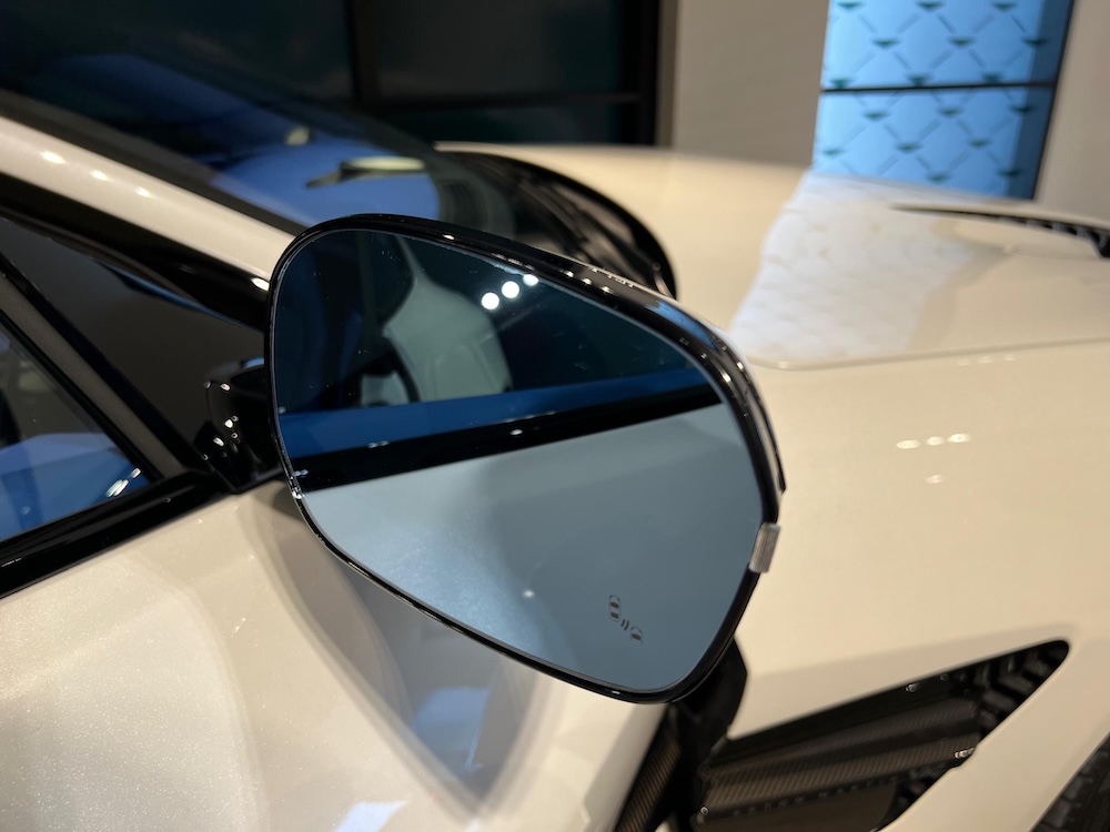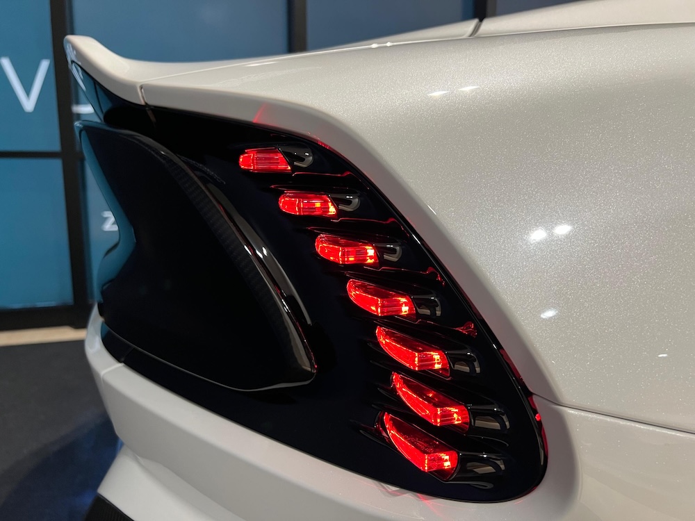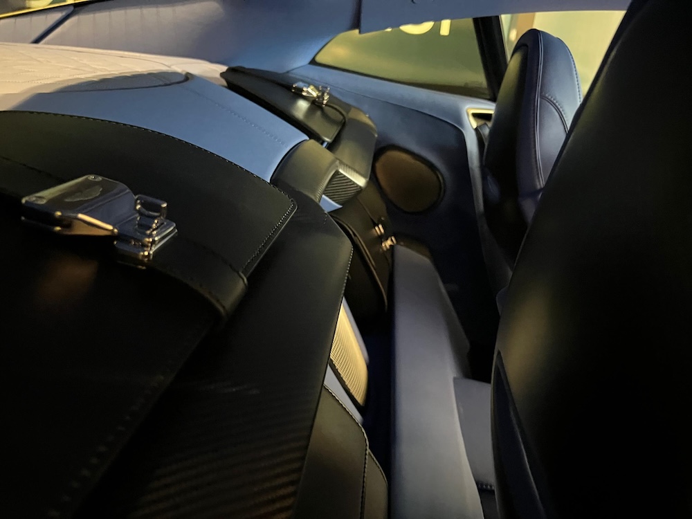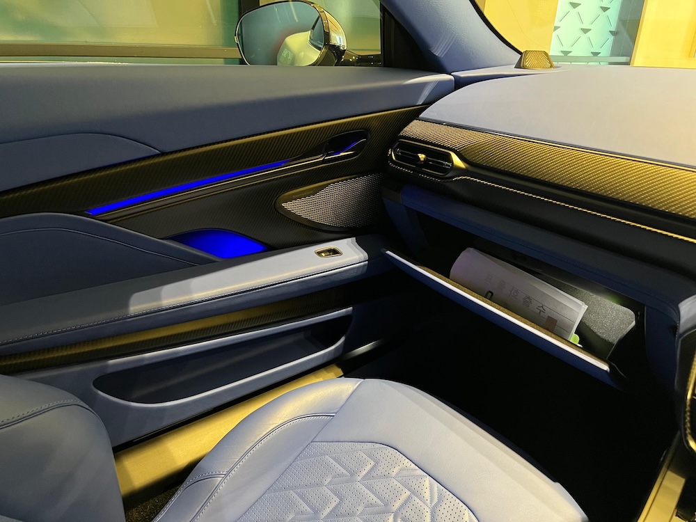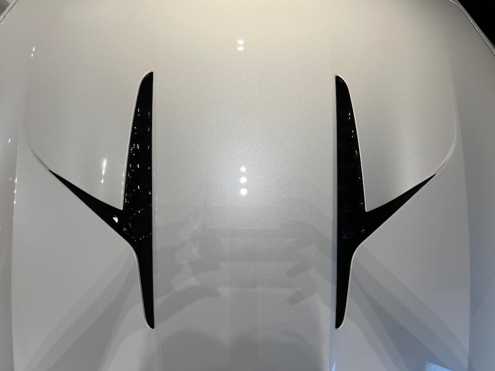 - Panel badan gentian karbon pada bahagian dalam bonet, luar pintu, dan panel sisi badan