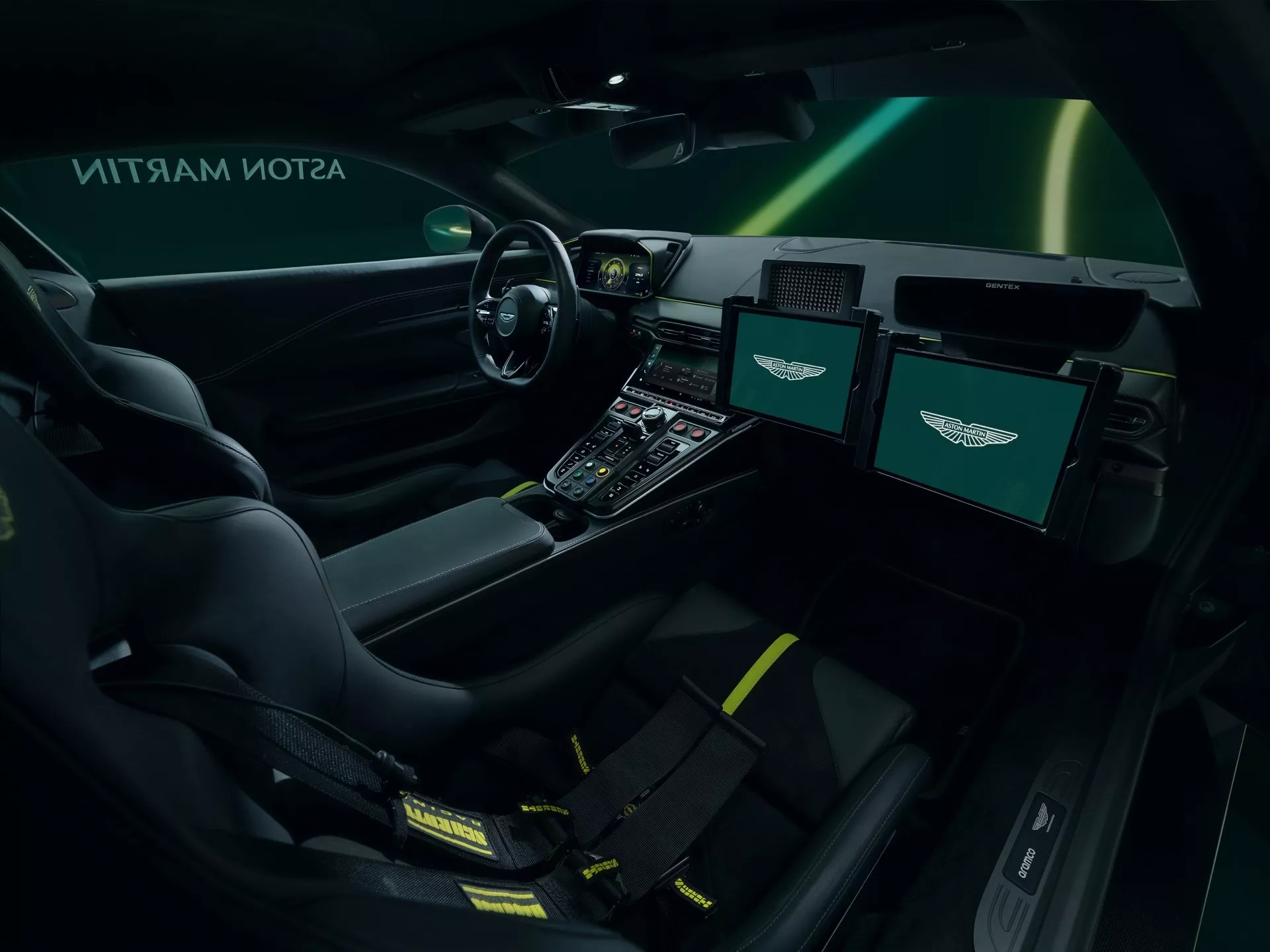 Bahagian dalaman juga kekal dengan trim Lime Essence sebagai perakuan kepada warna perlumbaan Aston Martin.
