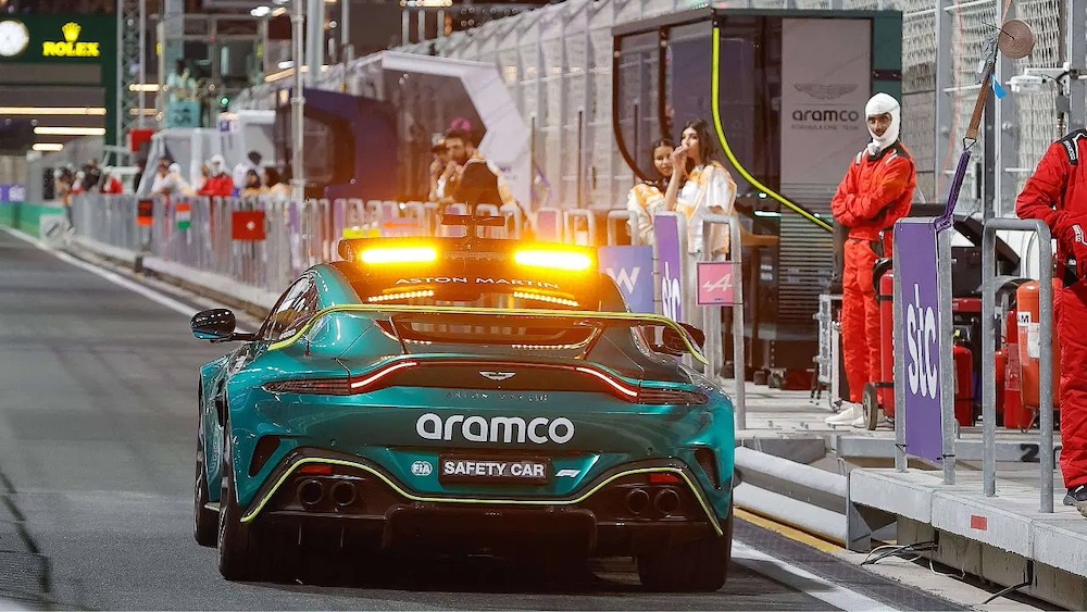 Vantage dengan kelengkapan khas memulakan tugas pada pusingan F1 Arab Saudi dengan trenkuasa 4.0L V8 turbo kembar yang memiliki 30 peratus kuasa berbanding model sebelum ini.