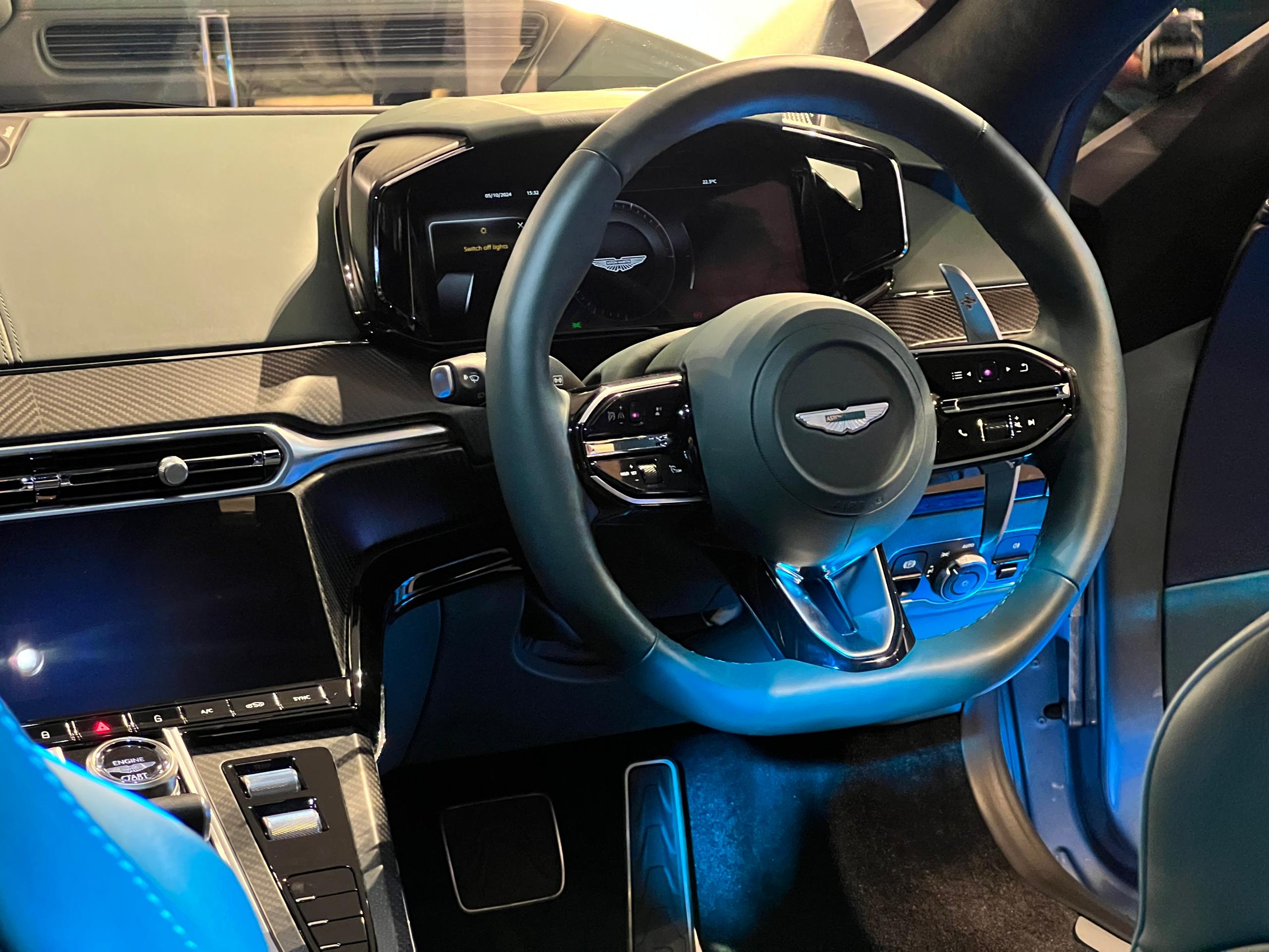- Dihiasi gril logam 5-Vane beserta logo Aston Martin di bahagian bonet hadapan dan belakang.