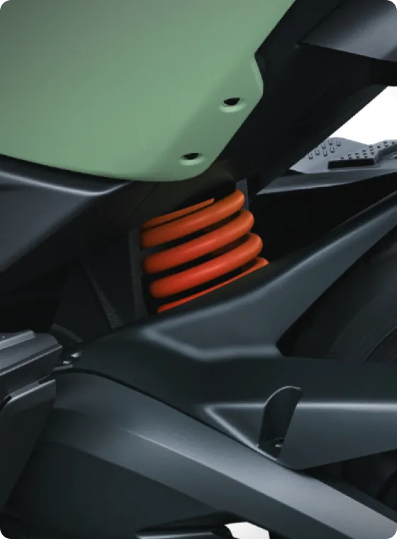 - Brek cakera tunggal depan dan belakang dengan sistem brek kombi dan regeneratif.