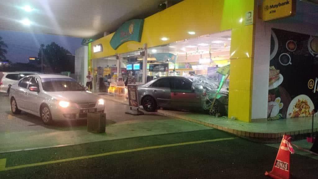 Ketua Polis Daerah Melaka Tengah ACP Christopher Patit berkata, dalam insiden kira-kira 7 malam itu, mangsa Jaafar Yusof, 69, baru saja selesai mengisi petrol di stesen tersebut sebelum tertekan pedal minyak ketika memasukkan gear D.