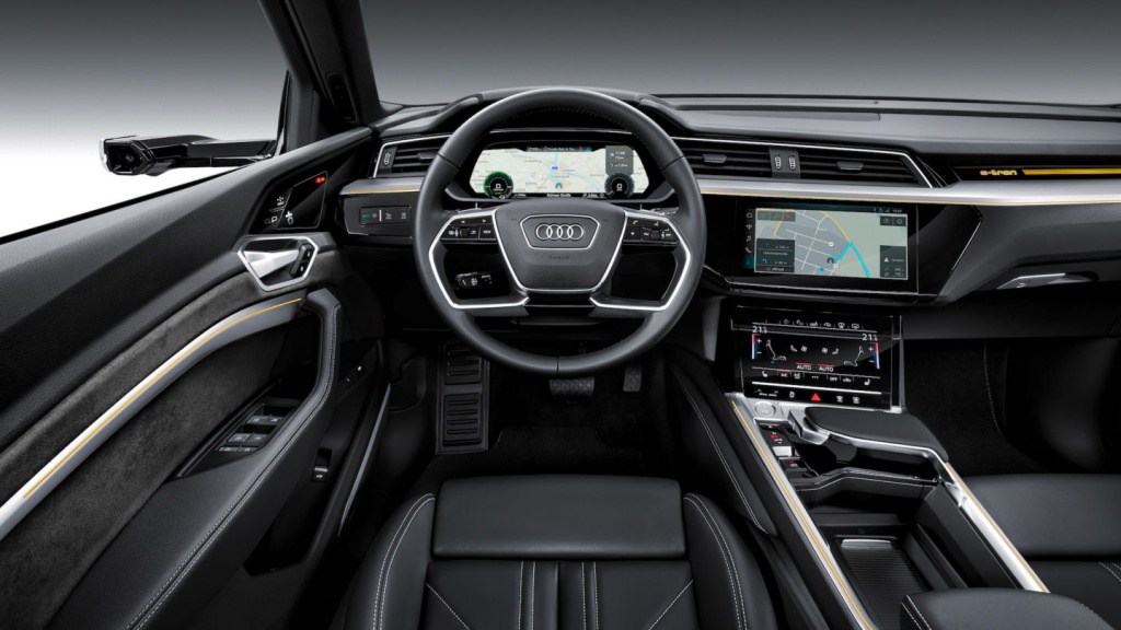 Sementara itu, pilihan kabin didatangkan standard menerusi kerusi hitam, coklat atau kuning air bersama aksen berbeza pada keseluruhan dalaman. Audi e-Tron dibangunkan menggunakan platform MLB yang dimodifikasi, dengan titik mounting suspensi, sistem kawalan penyaman udara, rangkaian elektronik kenderaan dan bantuan pemandu dan hiburan ialah sama seperti Q7 dan Q8. Ia juga biasa bagi model sedan Audi dan kenderaan lain di bawah Volkswagen Group yang menggunakan arkitektur serupa.