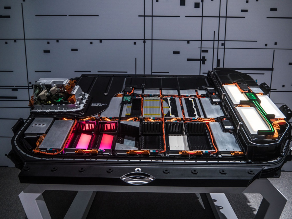 Komponen antara gandar yang baharu. Terdapat sepasang motor elektrik, di sisi pek bateri litium-ion 95kWh. Juga penyejukan tren kuasa yang penting bagi menjaga bateri dan motor dalam julat suhu betul supaya memperoleh prestasi EV terbaik.