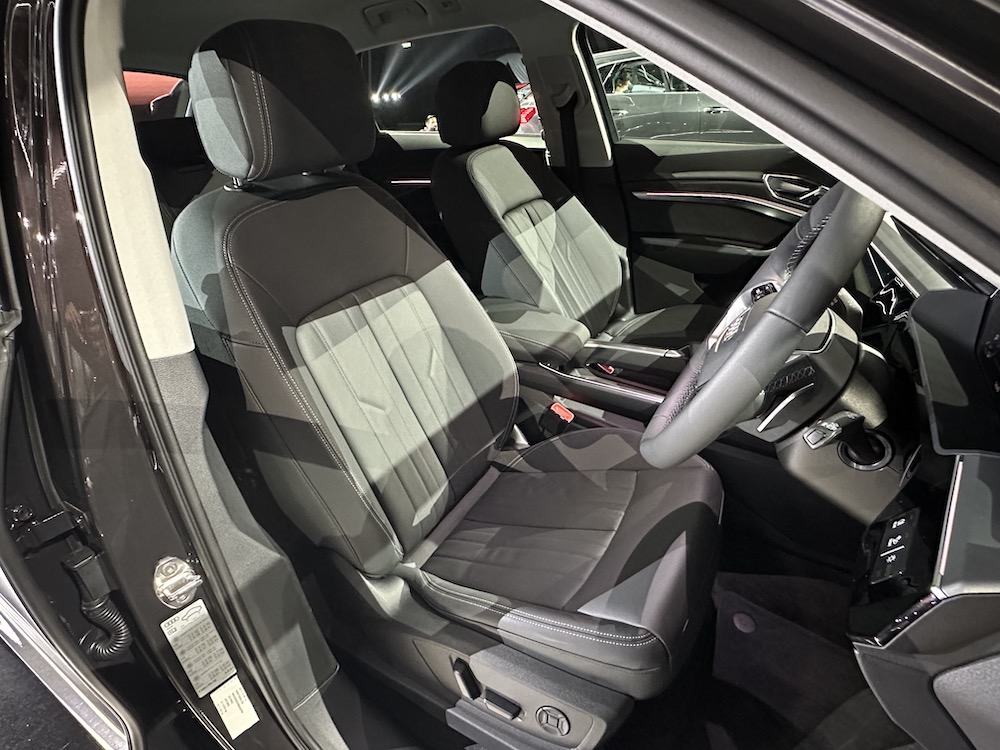Ruang kabin SUV Audi Q8 e-tron advanced 50 quattro dan Audi Q8 e-tron S line 55 quattro menawarkan pengalaman tempat duduk kelas pertama dengan kerusi belakang boleh lipat dengan tambahan ruang kargo 1,725 liter.
