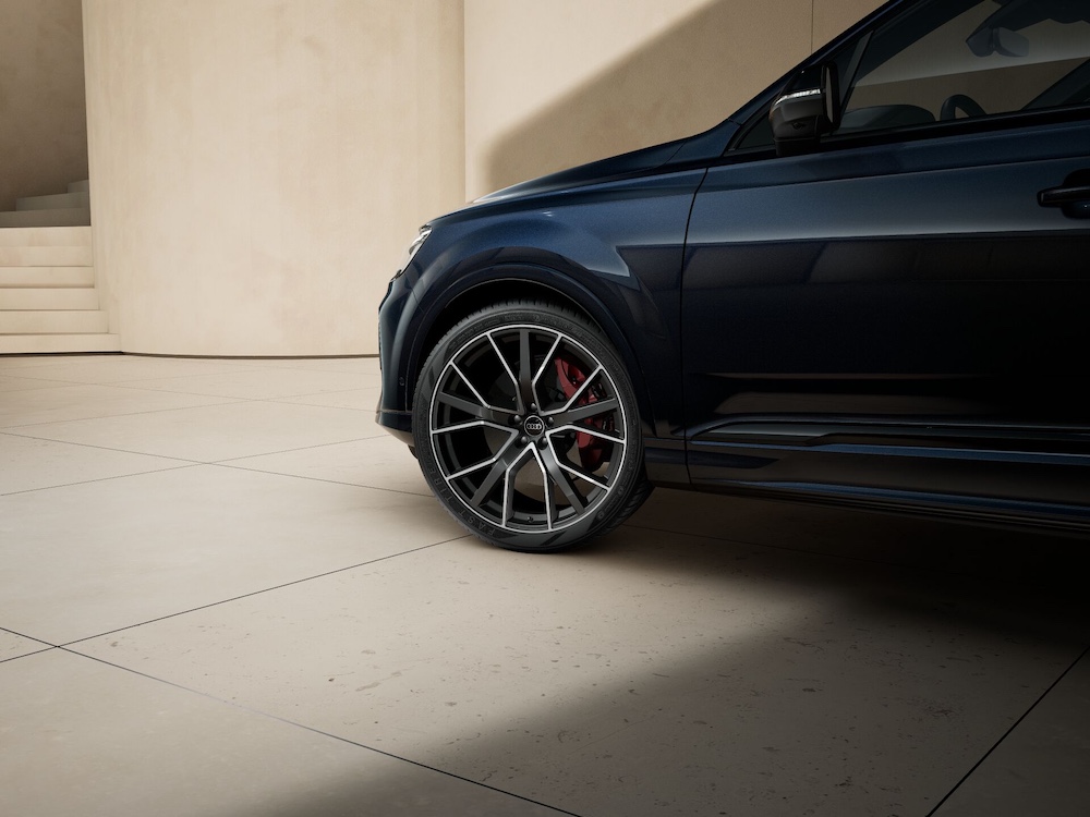 Audi Q7 S Line menampilkan rekabentuk S Line yang garang dan atletik, lengkap dengan Black Styling Package Plus yang menyerlahkan elemen sporty seperti bampar khas, gril Audi Singleframe hitam dan rim Audi Sport 22 inci.