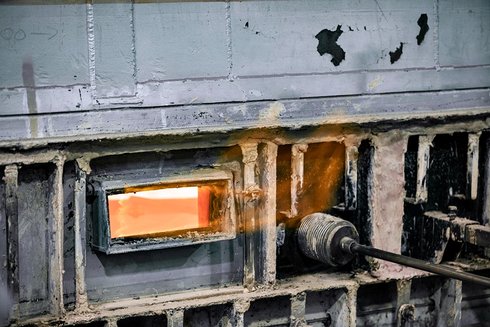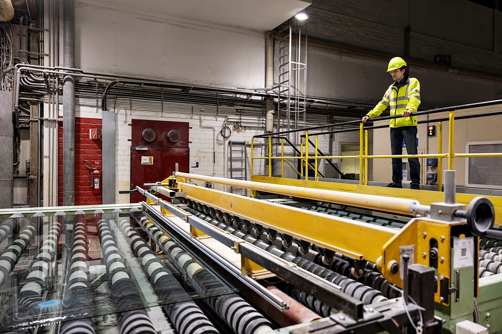 - Saint-Gobain Glass memproses bahan tersebut kepada plat kaca di Herzogenrath, Jerman.