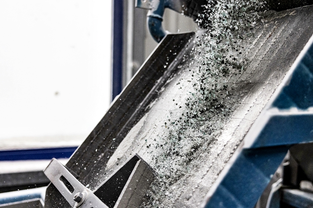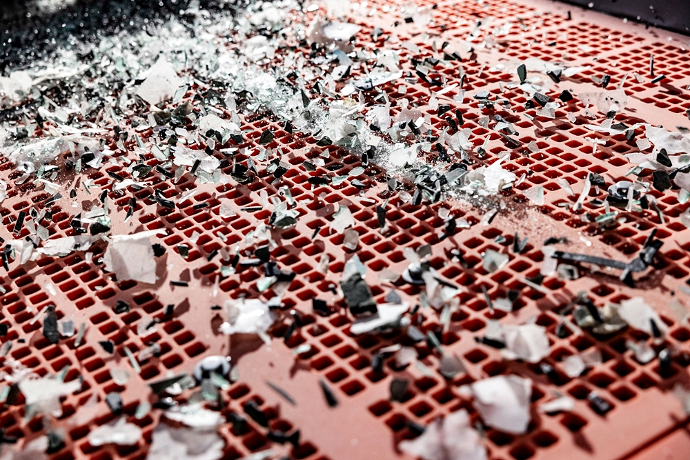 - Kemudian cermin dipecahkan kepada bentuk kecil untuk diproses. Sekadar makluman, kaca yang digunakan semula untuk botol minuman tidak memerlukan peraturan ketat seperti cermin kereta.