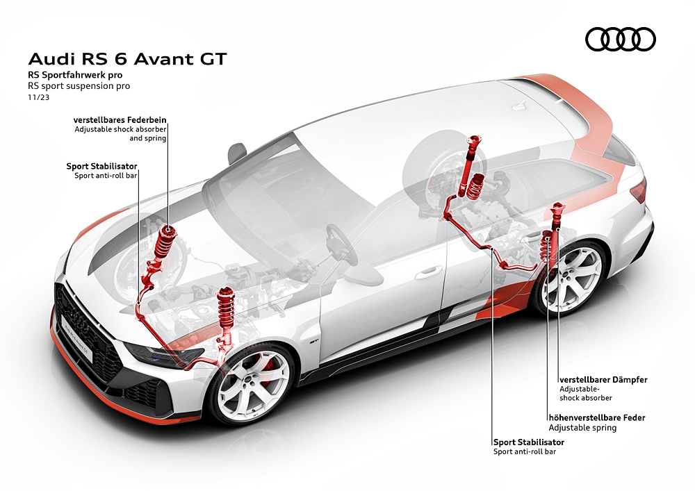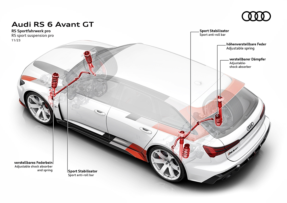 - Penyerap hentak boleh laras – pertama kali digunakan dan khusus untuk RS 6 Avant GT.