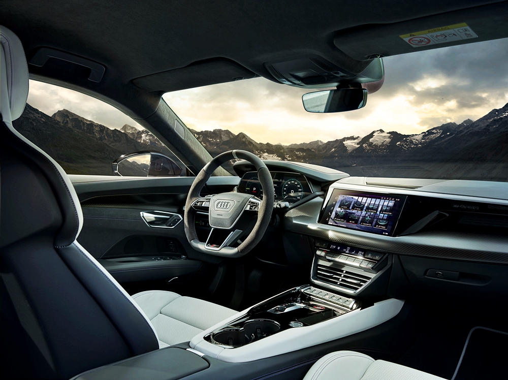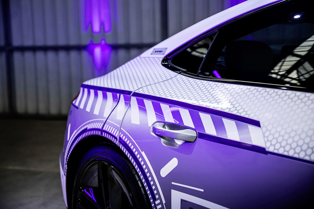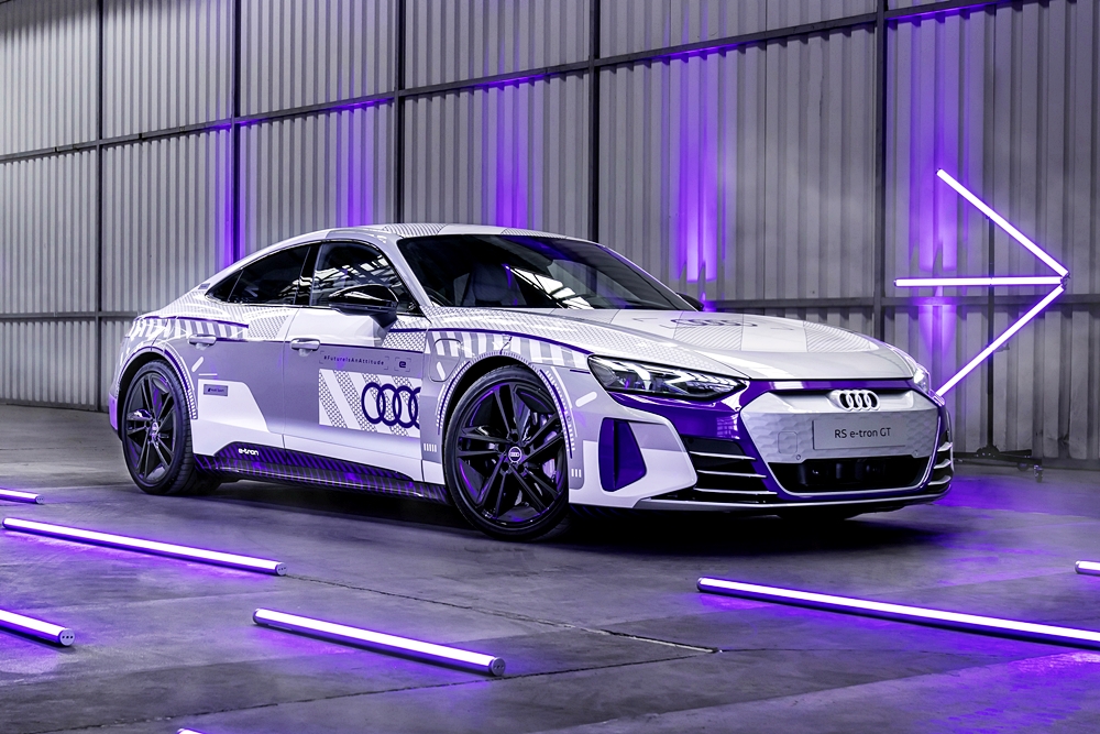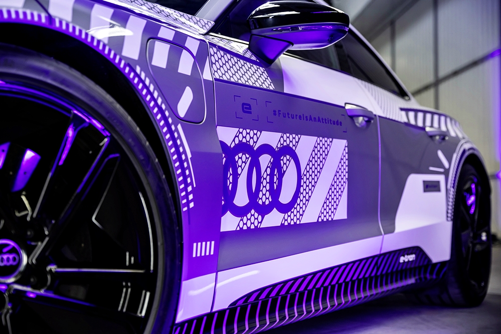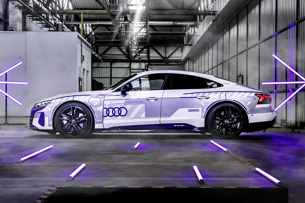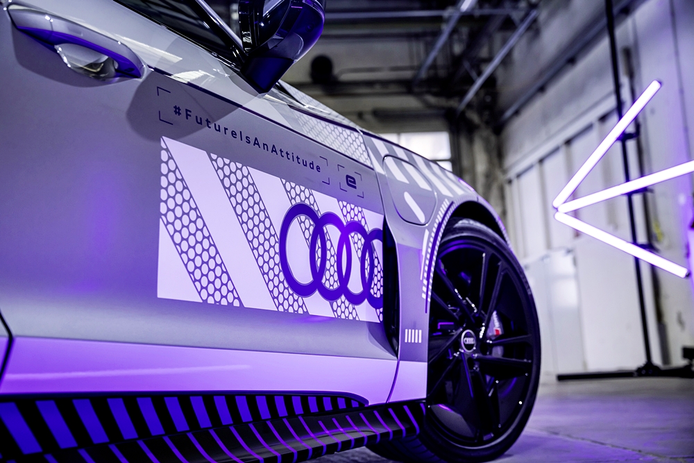 Kanvas kepada model istimewa ini ialah RS e-tron GT dalam warna Florett Silver metalik dan bumbung CFRP hitam. Badan kereta dibalut grafik perak dan putih, merujuk kepada kristal salji dan tasik ais. Warna violet pula mewakili warna terang cermin mata sukan musim sejuk.