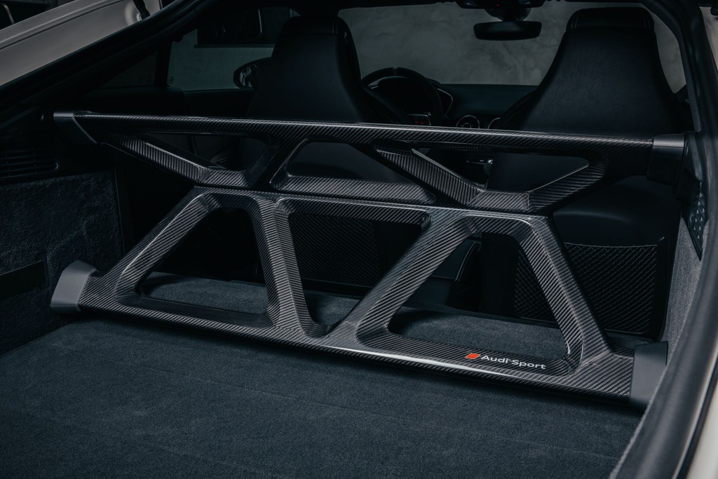 Barisan kerusi belakang dibuang dan digantikan frem gentian karbon diperkuat buatan Audi bagi memastikan TT RS 40 ini lebih ringan berbanding TT RS Coupe, kira-kira 16kg. Ini bukan soal kosmetik, tetapi frem itu turut membantu menambah baik kekuatan badan kereta sport berkenaan.