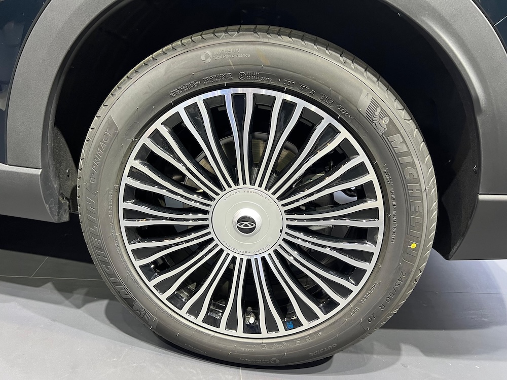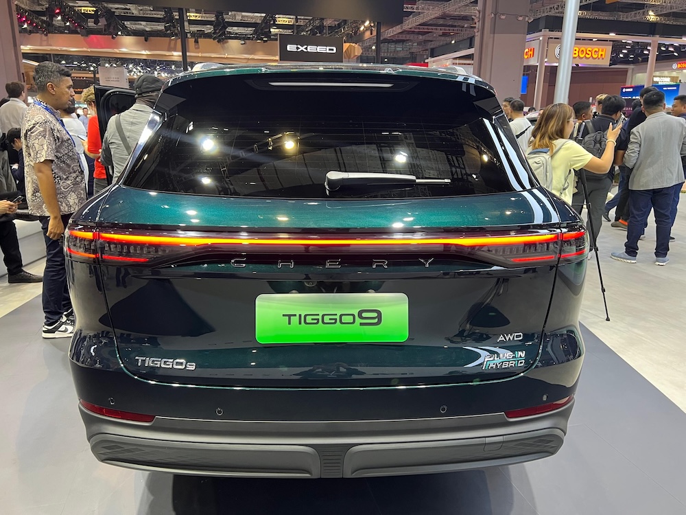 Rekabentuk luaran Chery Tiggo 9 CHS PHEV menampilkan gril oktagon menonjol, garis badan dinamik, dan rim multispoke 20 inci yang mencerminkan konsep 'Conguer' dan 'Guard'.