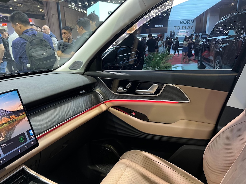 Ruang kabin dilengkapi unit infotainmen skrin sentuh definisi tinggi (HD) 15.6 inci, konsol multifungsi yang disepadu, dan kerusi dengan kemasan jahitan 3D untuk keselesaan maksimum.
